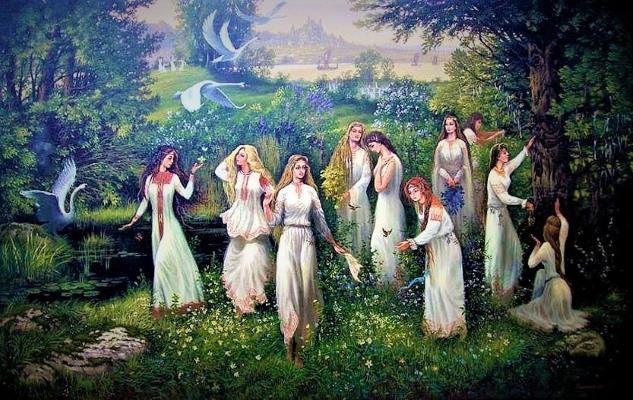В последний день зелёного травня настанет Русалья неделя, когда русалки покинут быструю Мяделку и тихие лесные озёра, выйдут из воды на берег. Станут русалки короткими летними ночами водить хороводы под чарующие, дивные песни. В местах русальих игрищ трава вырастет гуще и зеленее, птицы запоют звонче, и распустятся невиданной красоты цветы. Горе человеку, который осмелится там появиться! Водяные девы зацелуют его до смерти и утянут под воду.