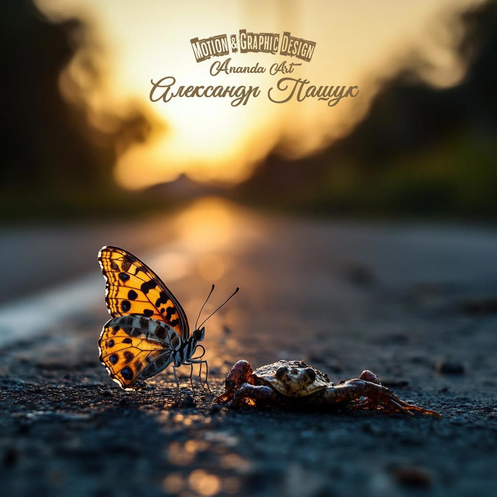 Прогуливался недавно по деревне. Тихо. Спокойно. Тут что-то резануло по сознанию, не сильно, но как-то колко. Опускаю глаза на дорогу, а там — бабочка. Красивая, большекрылая. Сидит на тельце раздавленной лягушки, крылышками шевелит, улетать не торопится.