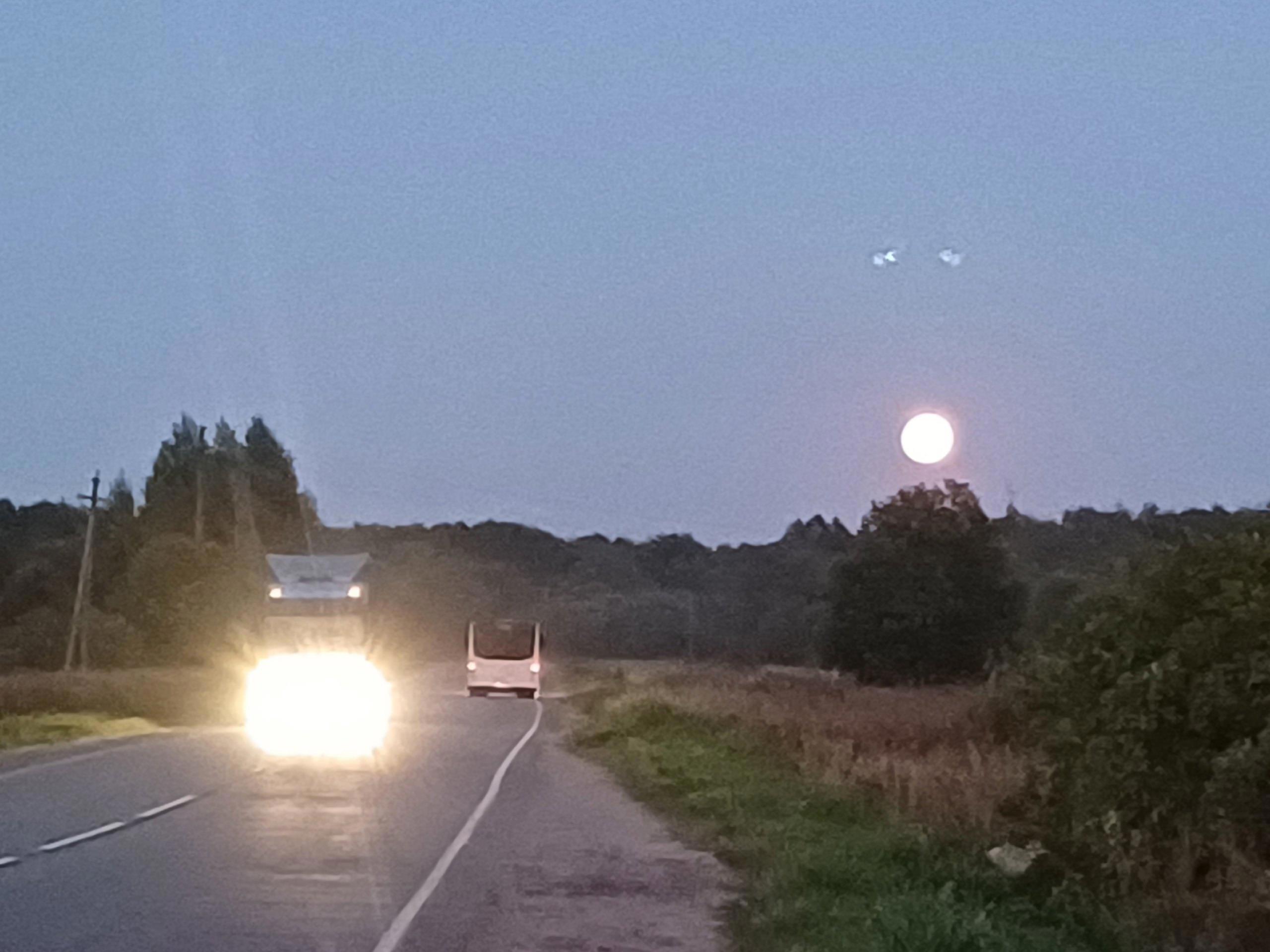 Автор: Николай Владимирович БеляевПозачера возвращались на машине домой - и увидели над мостом луну. Напомню, что как раз было суперлуние. Ровное тёмно-голубое небо - и это блюдце.