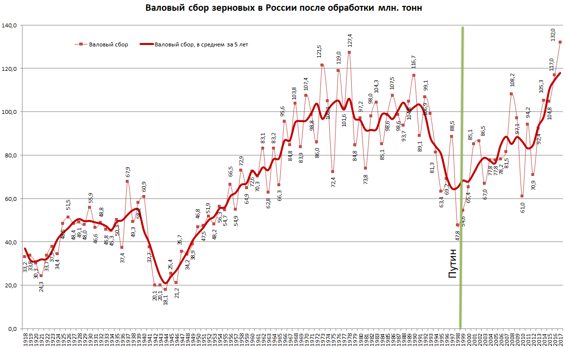 Заметное превышение уровня периода до коллективизации по урожаям начался уже при Хрущеве с появление органических удобрений и накопительного эффекта от предыдущих вложений. При этом СССР начал импортировать зерно, рост урбанизации и выше потребление диктовало свои условия. Климат при том уровне технологий не позволял СССР себя самообеспечивать без снижения потребления. И даже масштабное финансирования при Брежневе не смогло кардинально изменить ситуацию ЧЕРНАЯ ДЫРА СОВЕТСКОЙ КАЗНЫ. В данном случае вложение капиталов и достижений науки сильно обесценивалось непродуманностью политикой союзного правительства.