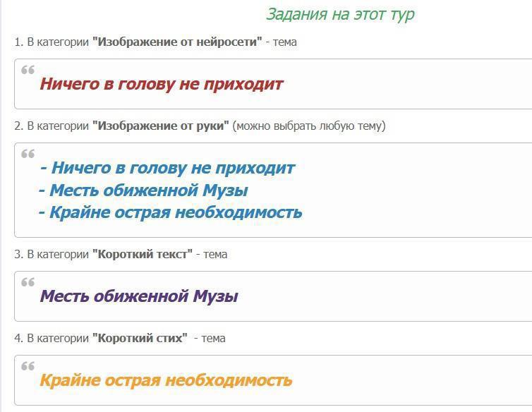 Автор: ArteFMХочу рассказать про блицтурнир "Твори кратко", организатор Беффонов Алекс