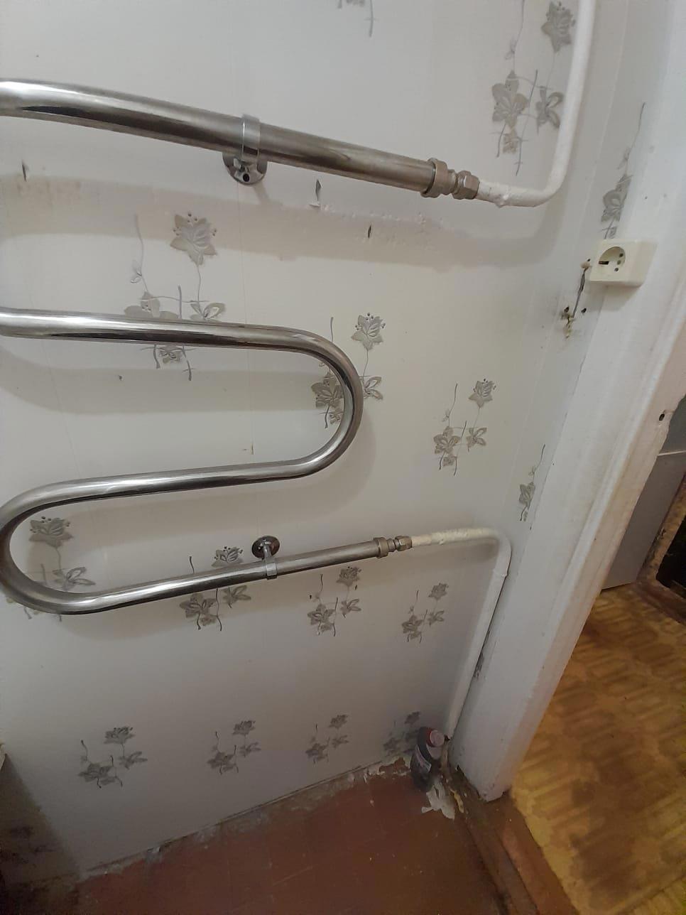 И на закуску просто стены. И полотенцесушитель (тоже следы моих прошлых набегов, и дальше нержавейки мне менять нельзя - это тоже домовая собственность). И труба над полом, да. Горячая.