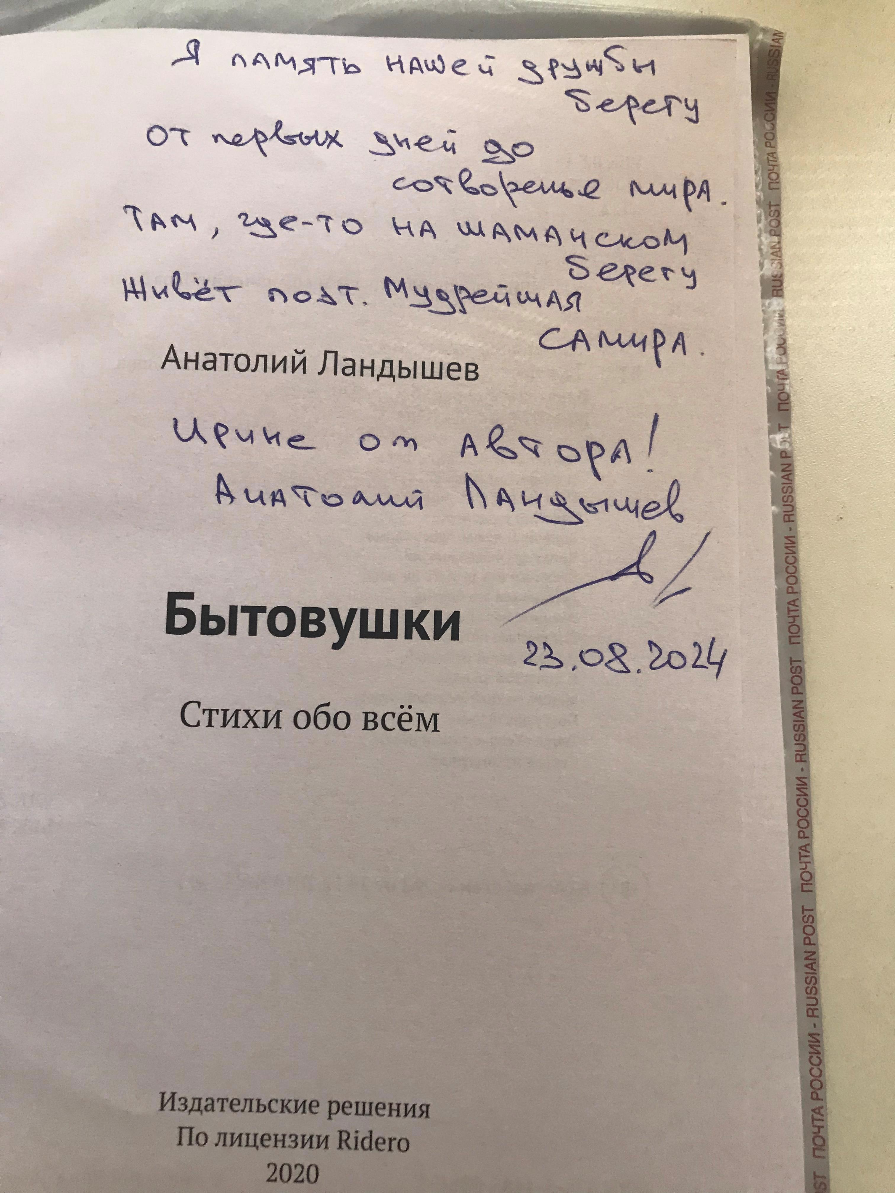 Спасибо, Толя. За книгу, за теплоту, за посвящение. Алаверды.