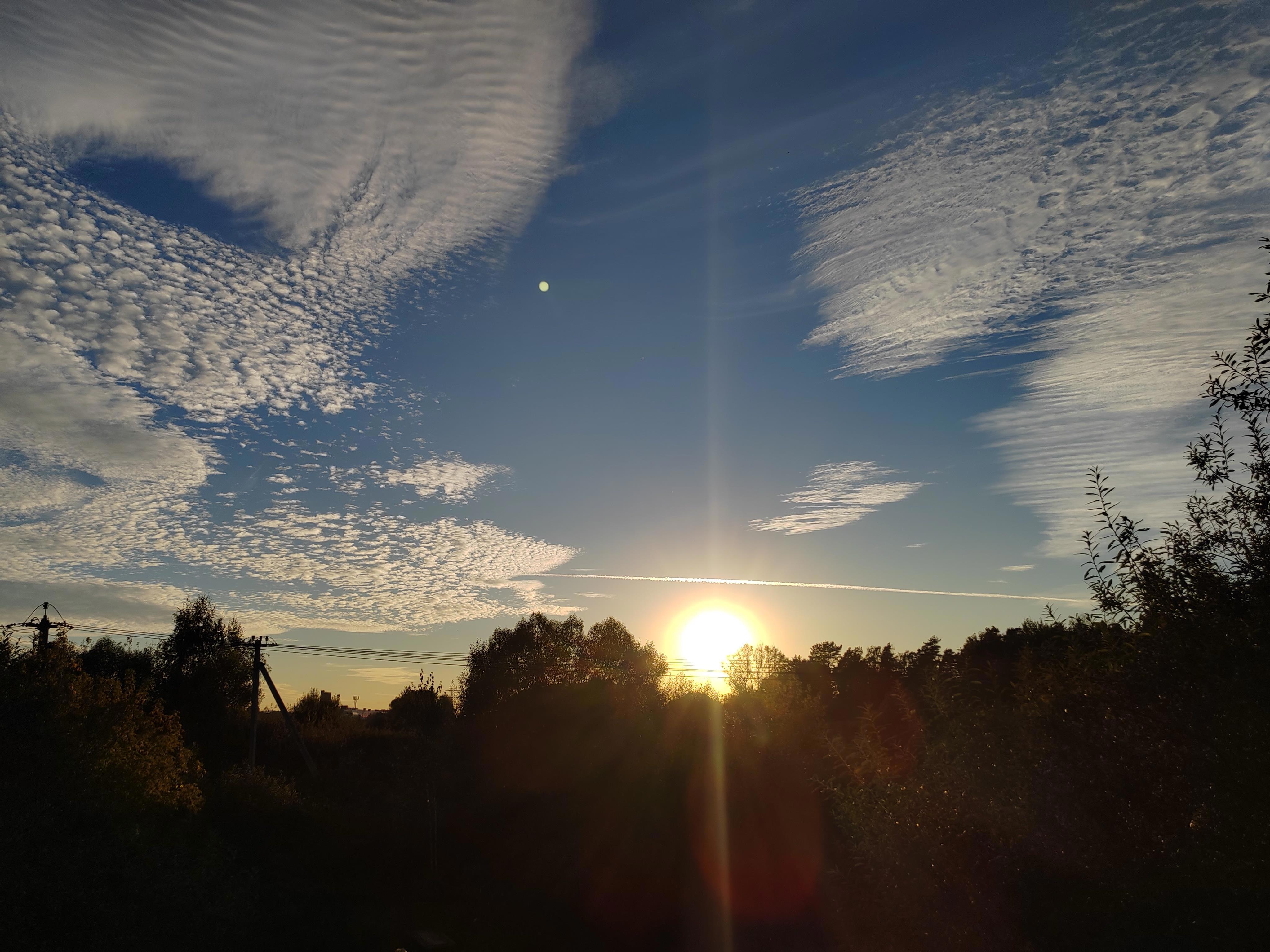 Сегодня было изумительно-красивое, невероятно высокое небо, усыпанное лёгкими, как лебяжий пух, облачками.