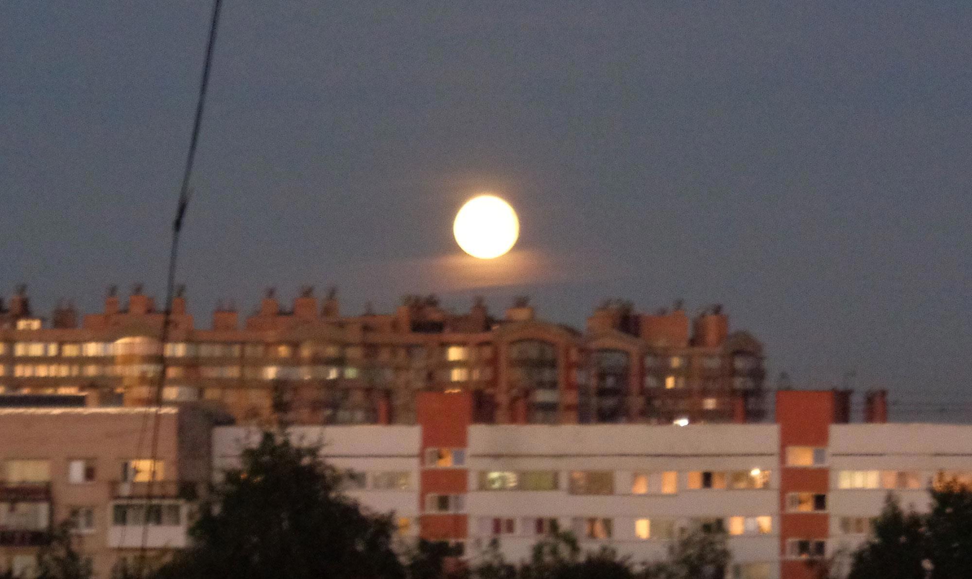 Интересный был закат, он ещё не погас, а на западной стороне уже всходила луна.
