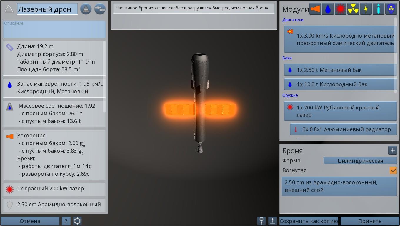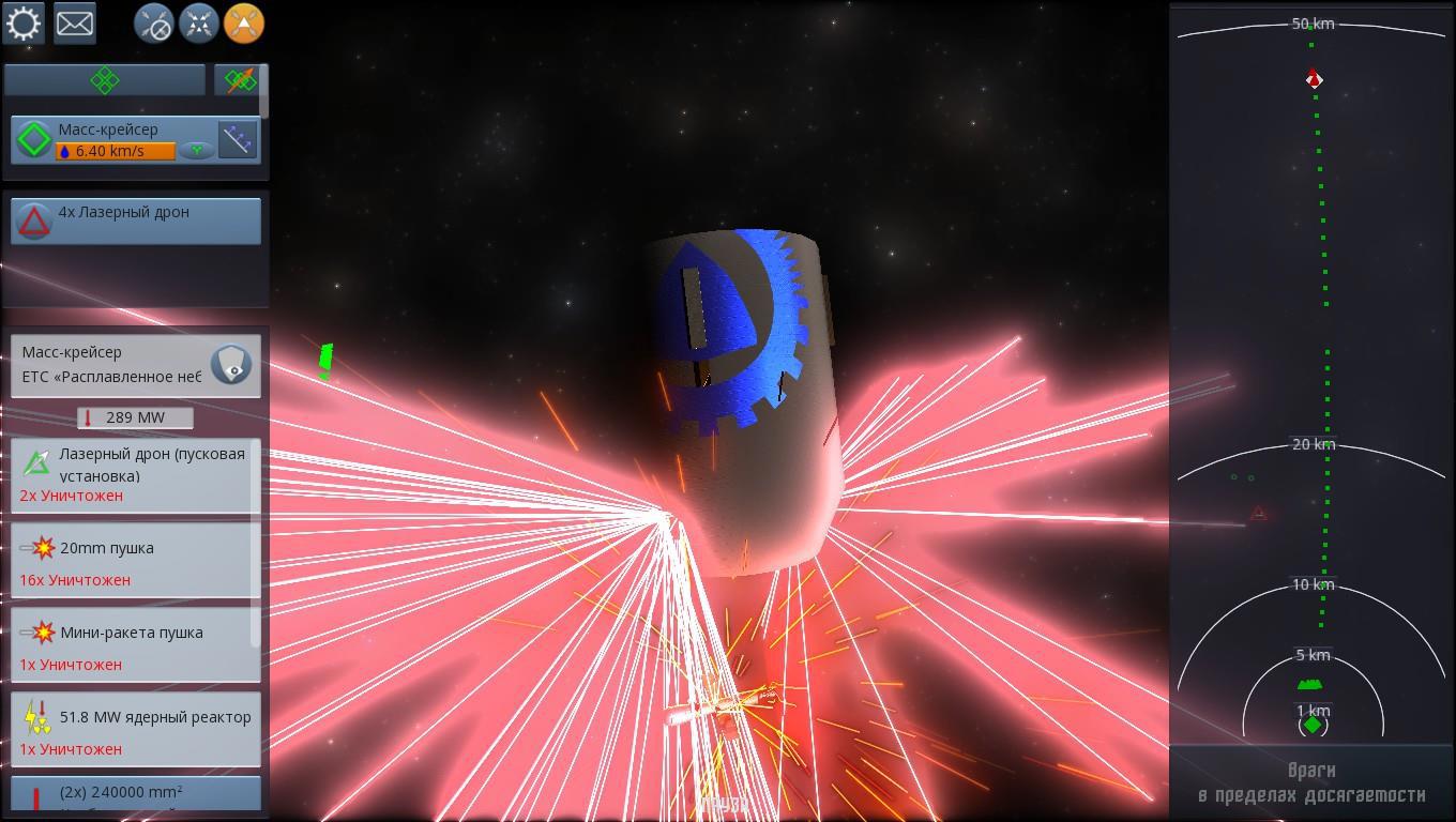 А между собой - мегалазер сжигает всё торчащее и не прикрытое абляционной защитой, но добивать даже небольшой корабль, ею прикрытый, будет часами. Зато он попадает по дронам.