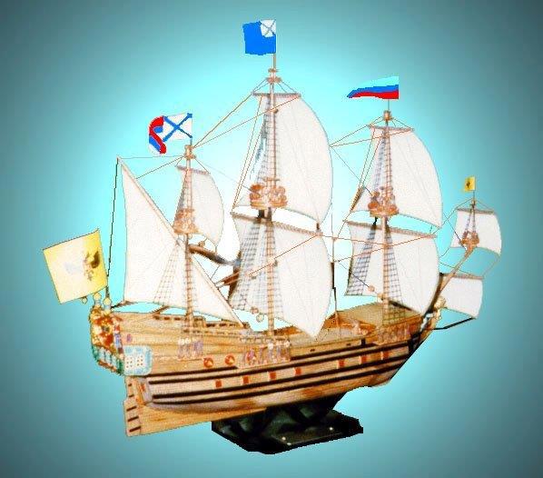 Лишь однажды мне по-настоящему улыбнулась удача. Мастеру понадобилась моя помощь. Дело было так. В нашем городе жил чемпион мира по радиоуправляемым яхтам (ага, есть и такой вид спорта). И случился у него юбилей. Собрались моделисты на предмет «что ему подарить». И решили подарить модель парусника. Выбрали первый корабль российского флота – «Орёл», который базировался у нас, в Астрахани. Плохо было то, что до праздника оставалось всего лишь чуть больше месяца. То есть – срок нереальный. Такую задачу мог выполнить только Мастер. Он быстро собрал информацию, прикинул технологию. Единственной проблемой для него были статуи. Ну, знаете, наверное – гальюнная фигура (в данном случае это был лев) и несколько фигурок людей на корме. Вот эту задачу он мне и доверил. Чёрт. Я их сделал и в срок! Отношу это к своим достижением. Вот фотка, хотя качество плохое… просто времени не было: