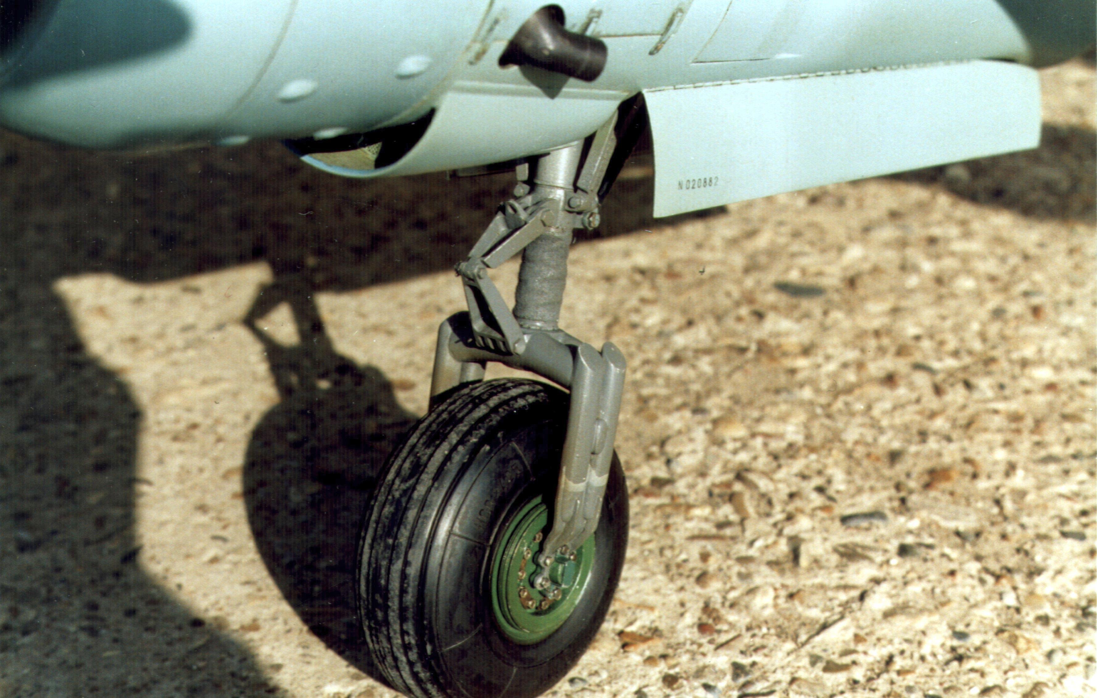 Носовая часть самолёта. Хорошо видна прицельная планка для бомбометания… Ни фига не понял, как ей пользоваться. Но зато понятно, что обзор из кабины был отличным. Хорошо видны колёса. Они были покрыты кожей. Над кабиной торчит сигара бензобака: