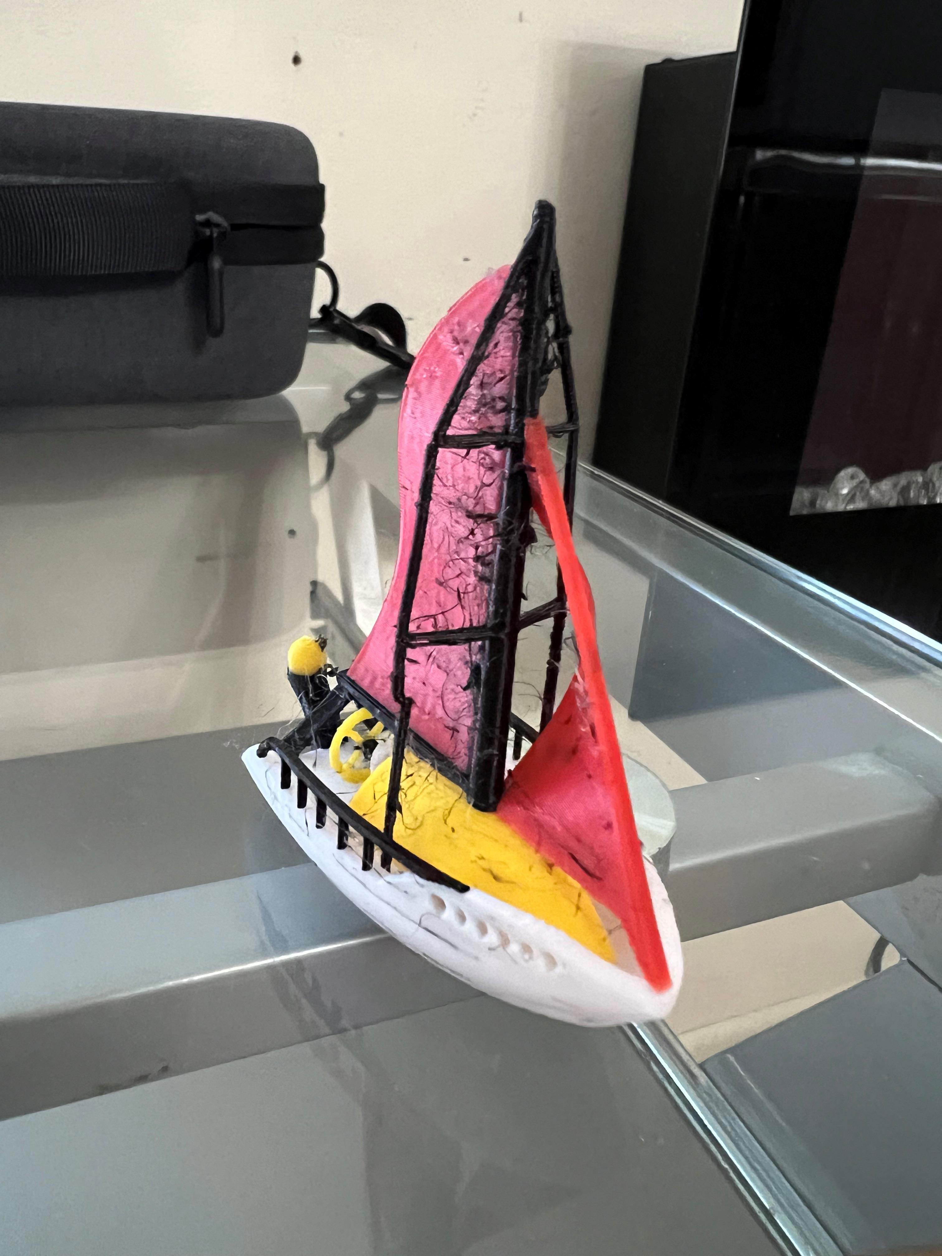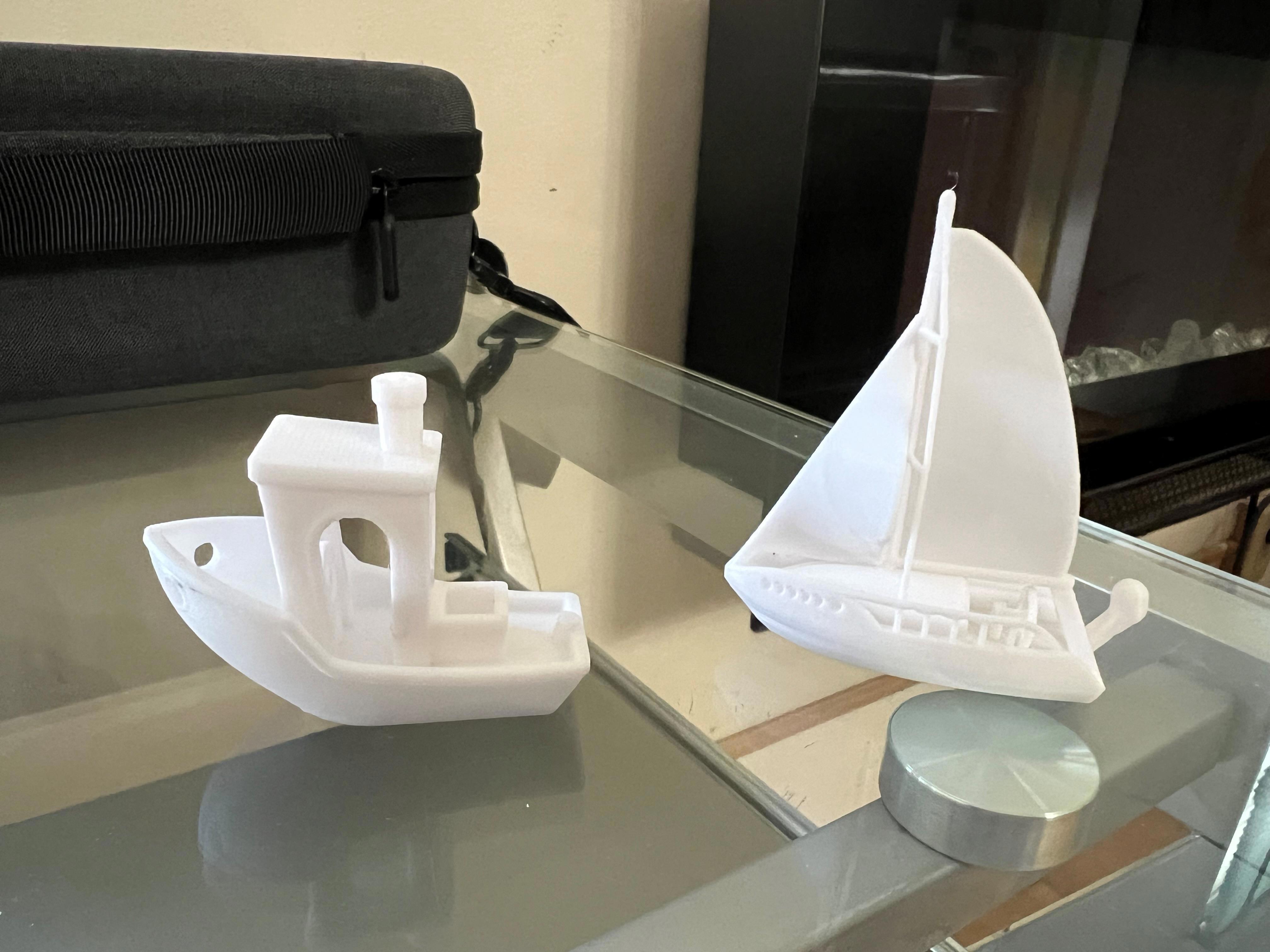 Прежде всего, кораблик, что все печатают первым делом. И ещё один, поинтереснее. Белые, чтобы потом раскрасить.