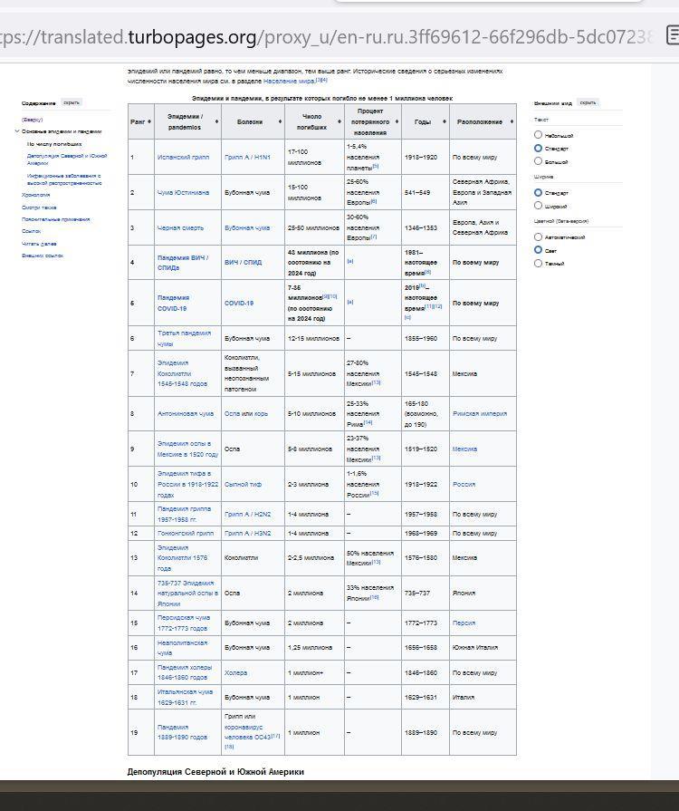 Я внизу привел в графиках и список пандемий, может кому интересно.