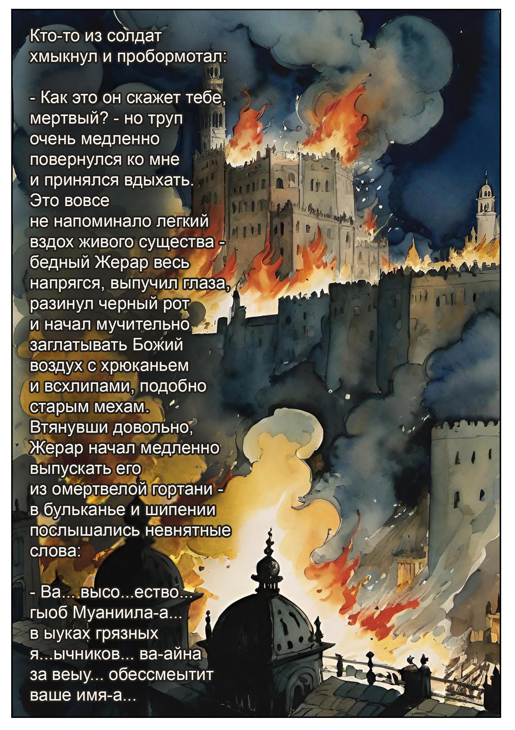 А если попробовать процитировать роман "Корона, Огонь и Медные Крылья"?