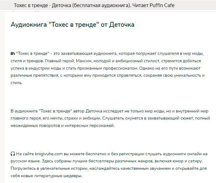 Но исключать того, что описание написано по ТЗ копирайтером за вознаграждение — тоже нельзя!