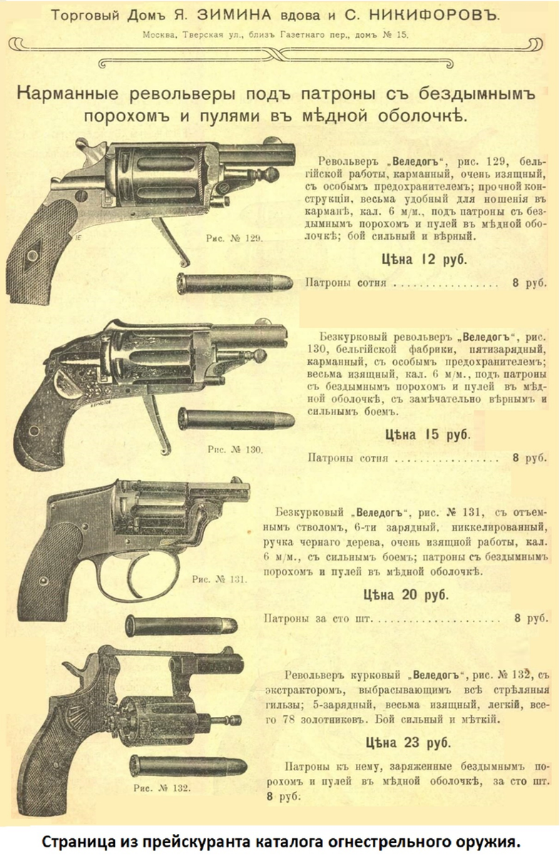 Револьверы в ту пору, были не такими уж мощными. В магазинах продавались модели мелкого калибра, с помощью которых предлагалось отбиваться от стай бродячих собак. Там же продавались "детские ружья" - малокалиберные, но огнестрельные. Пригодные для самообороны и охоты на птиц с близких расстояний. О какой-либо точности у гражданского оружия того времени говорить не приходилось.