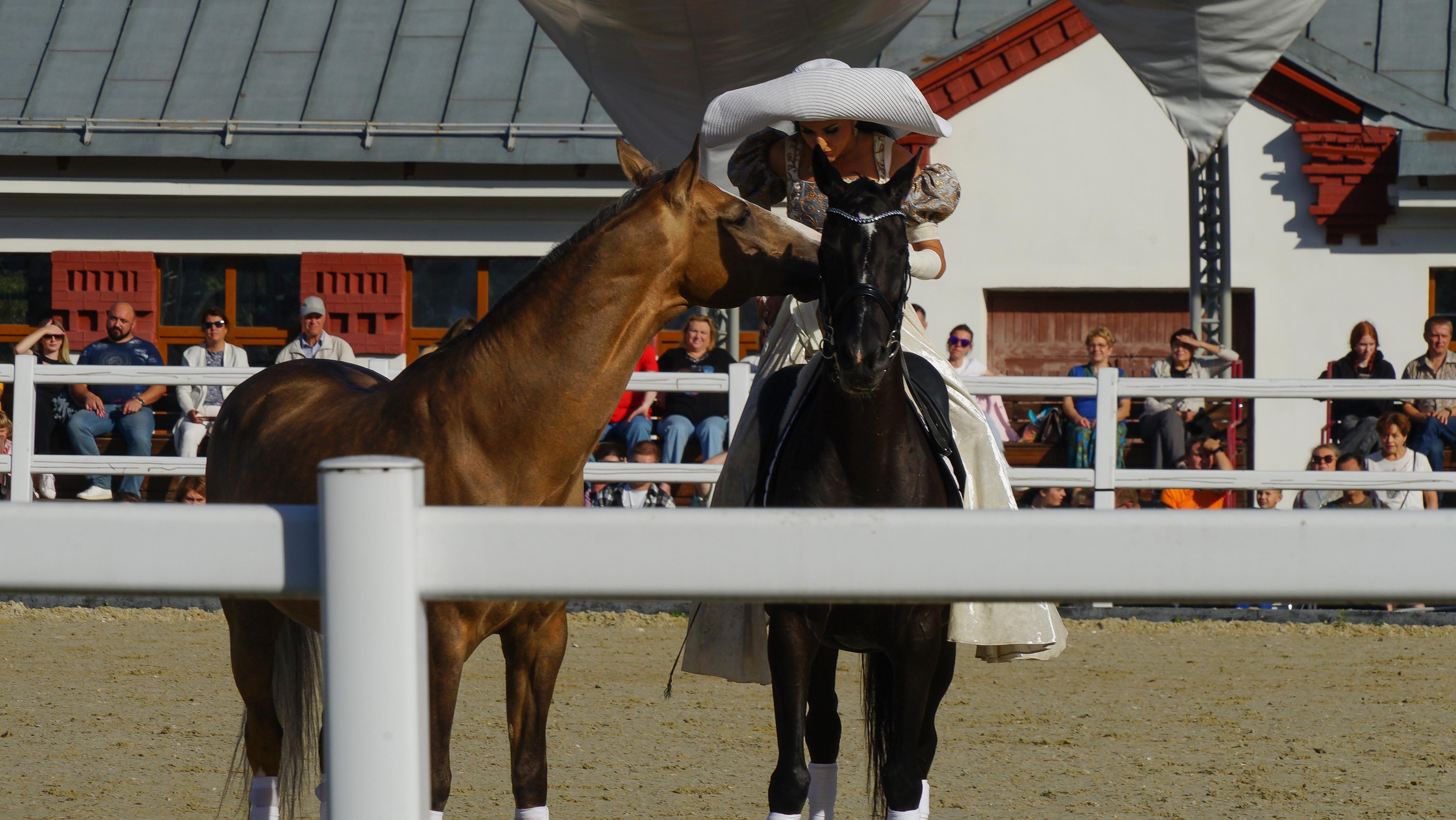 Кони делают свечку напротив друг друга, очень красиво, заснять не успела(