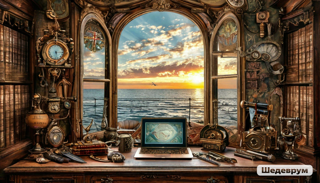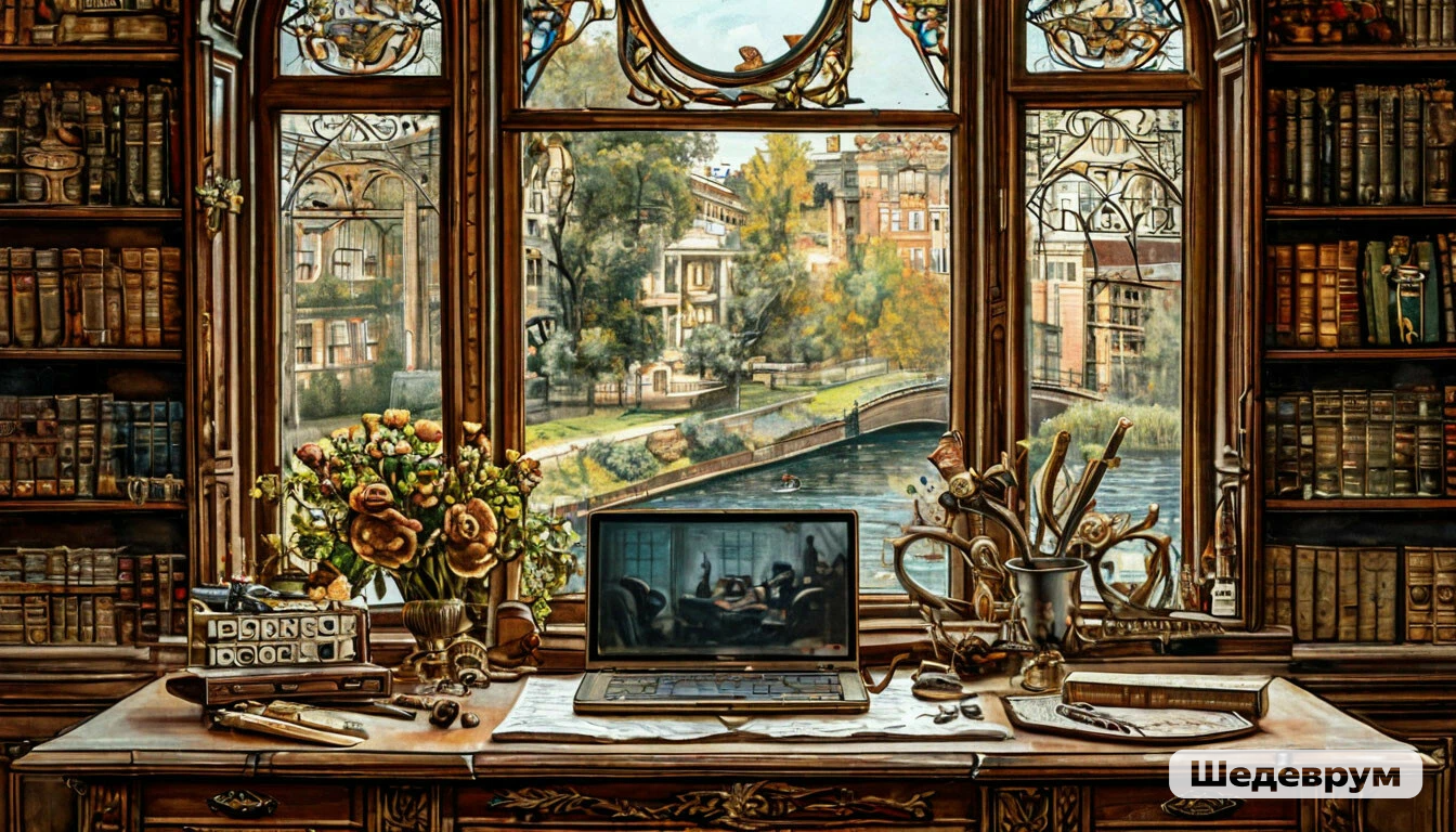 Света Таскаева (с которой мы весьма давно знакомы) https://author.today/u/id21805495 подала идею сделать фоном кабинет писателя и научила, уговаривать Шедеврум на что-то приличное.