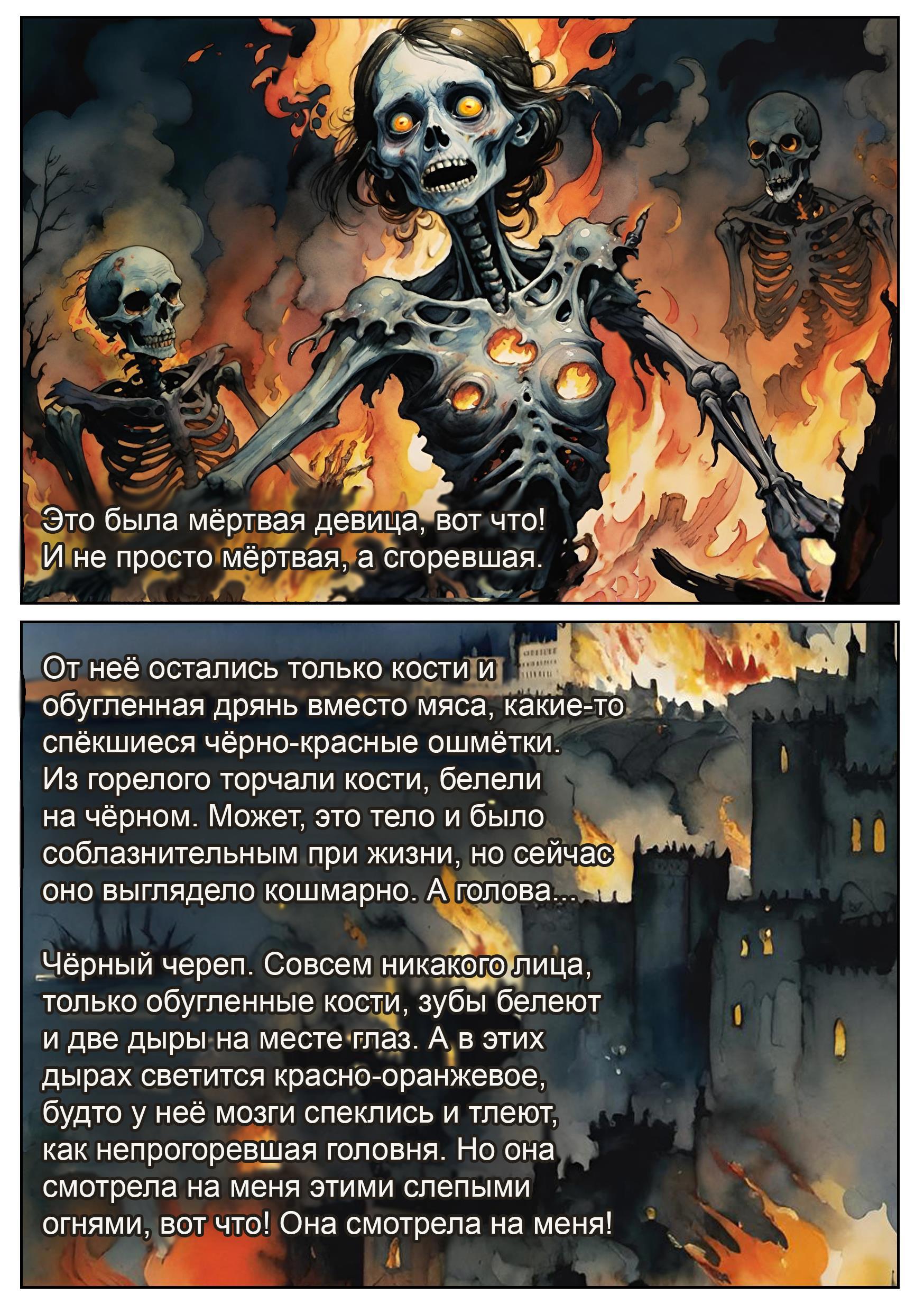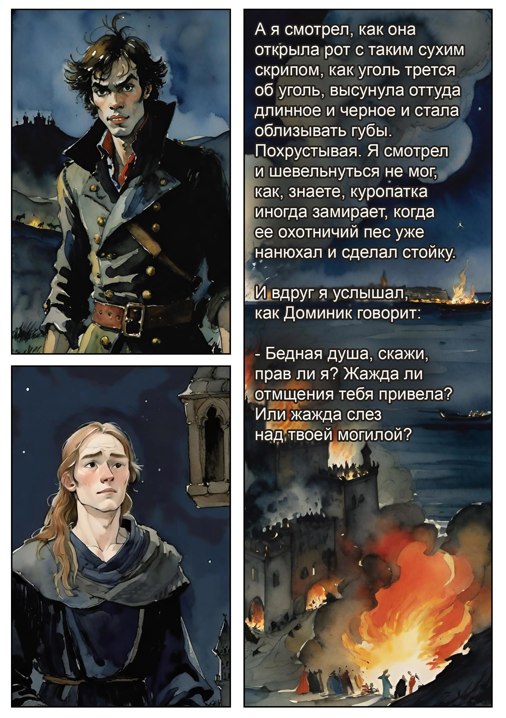 С "Короной" несколько проще: смысл не прорастает сквозь преграду абзаца и не вьётся прихотливым вьюнком, тут всё чётко. Но сами абзацы крупные, а текст - довольно медленный, если сравнивать с "Костром". Иная эпоха... Поэтому, подумав как следует, для "Короны" я выбрала немного другой стиль цитирования: один крупный кусок текста на страницу. И рисунков, соответственно, меньше, чем обычно. Пока имеется два цитарта, но вполне вероятно, что будут ещё.