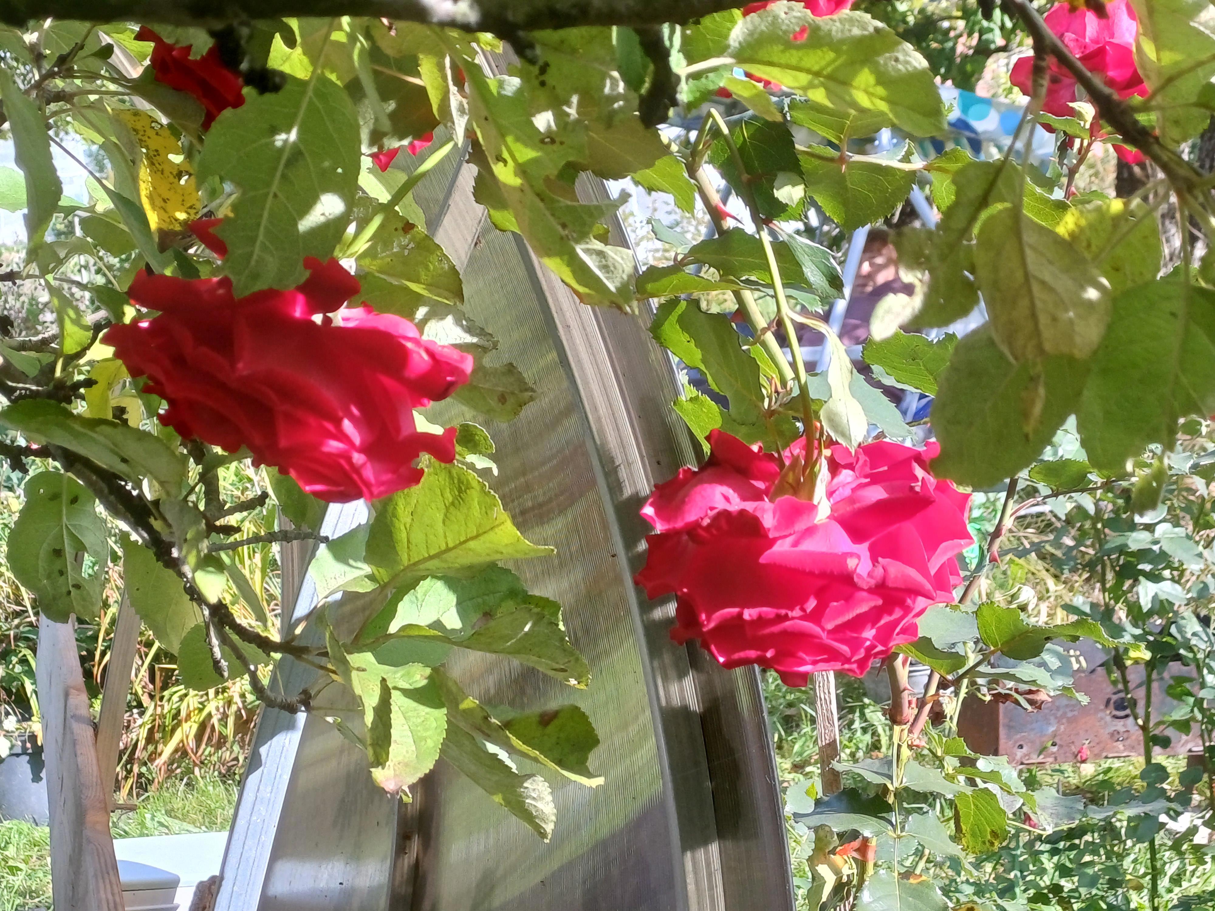 Раз уж вчера пост пропустил - пусть сегодня будут ещё и розочки. Снимал на выходных, сейчас уже начинают вянуть - но и новых бутонов куча: