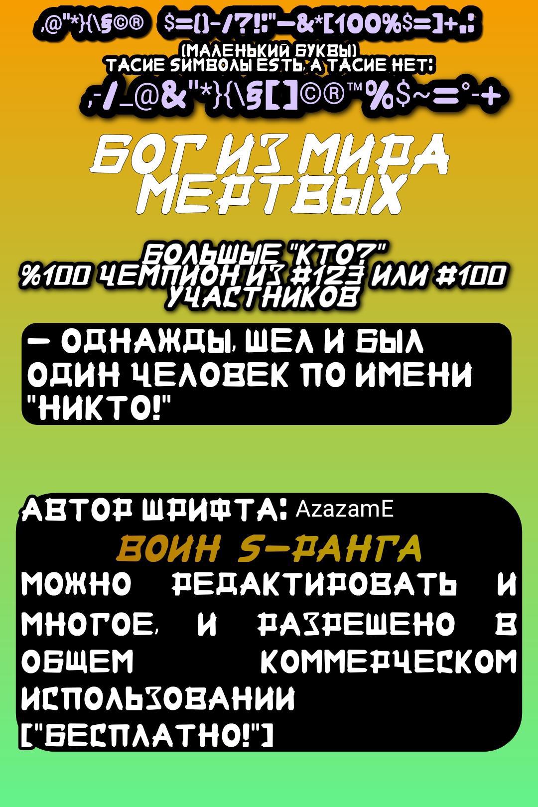 Вы можете увидеть английские буквы, это те буквы которые не написаны на большим, и таких всего шесть. Слово "Бог из мира мертвых" интересный, буду с каждым новым шрифтом такое писать.