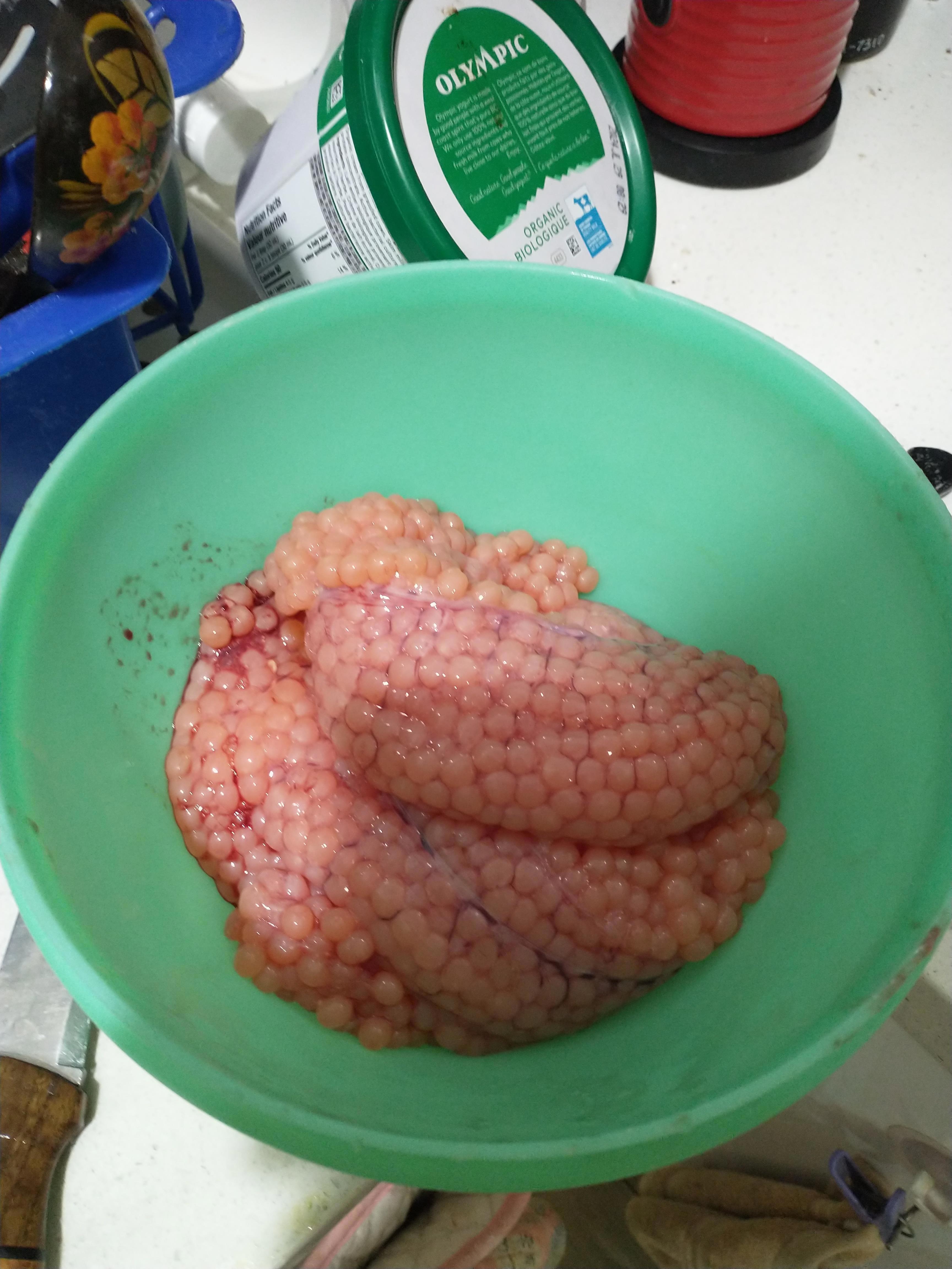 Икру засолил, получилось 750 грамм, и уже частично съел.