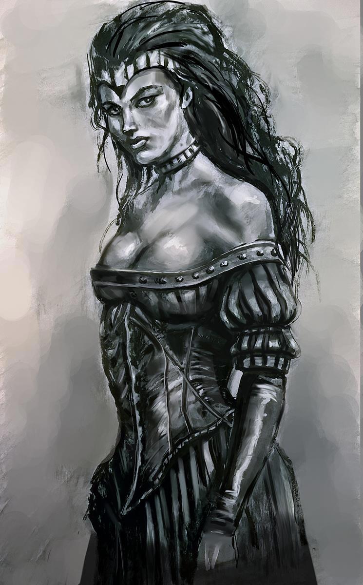 Попробовал повторить его рисунок. Вначале тоже на бумаге, потом правил в фотошопе и пайнтере.