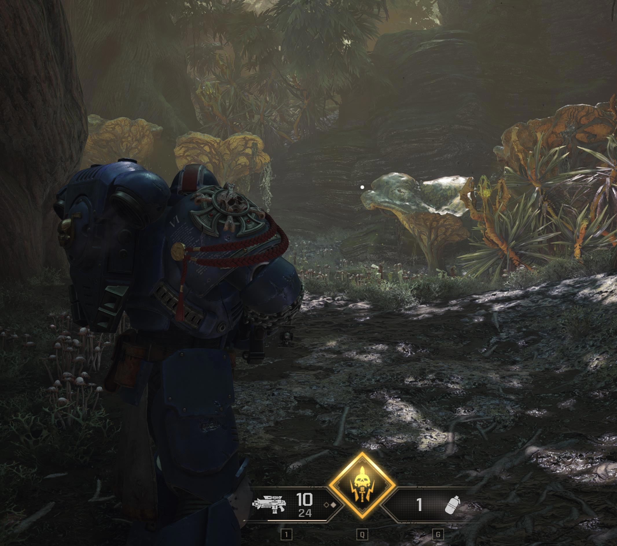 Зачем же разработчики разместили подобные лут боксы на каждом шагу? Потому что они нужны, так как не зная с чем придётся столкнуться вы можете взять совсем не тот вид оружия, который будет эффективен и просто не сможете пройти игру дальше если у вас этого лут бокса не будет. Кроме того постоянная необходимость пополнять крайне ограниченные боеприпасы так же требует этих лут боксов. Почему же боеприпасы постоянно заканчиваются? Потому что оружие не дамажит, так словно у тебя не болтер в руках(а болтер это реактивный автоматический гранатомёт), а простой автоган какого-то забулдыги с аграрной планеты. Разницы между стволами нет почти никакой, а та что есть скорее косметическая, чем реальная. Кроме того там под видом болтеров не только болтеры как таковые, но легко узнаваемые за скинами болтеров пистолеты пулемёты и штурмовые винтовки. В игре у нас отсутствует практически всё, что является базовым для мира вархаммер 40к.