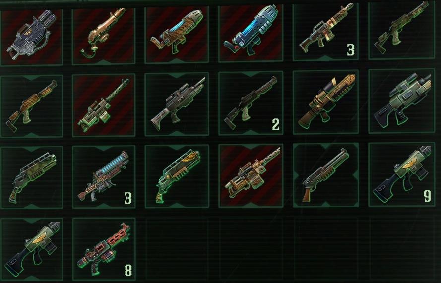 У нас есть на выбор несколько очень похожих друг на друга болтеров в модификации аля пулемёт, снайперская винтовка, пистолет пулемёт и ряд других, разной степени не эффективности и не универсальности. Есть пара видов гранат, можно взять с собой аптечку, даже две. В общем крайняя бедность арсенала, при полностью отсутствующей РПГ составляющей.