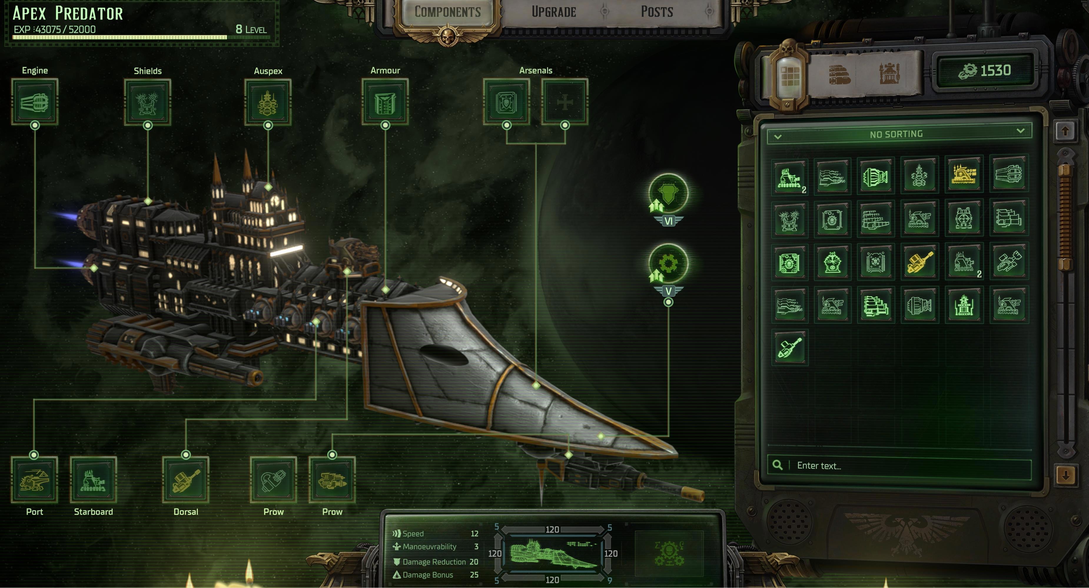 А здесь можно оснащать свой корабль найденным или купленным вооружением