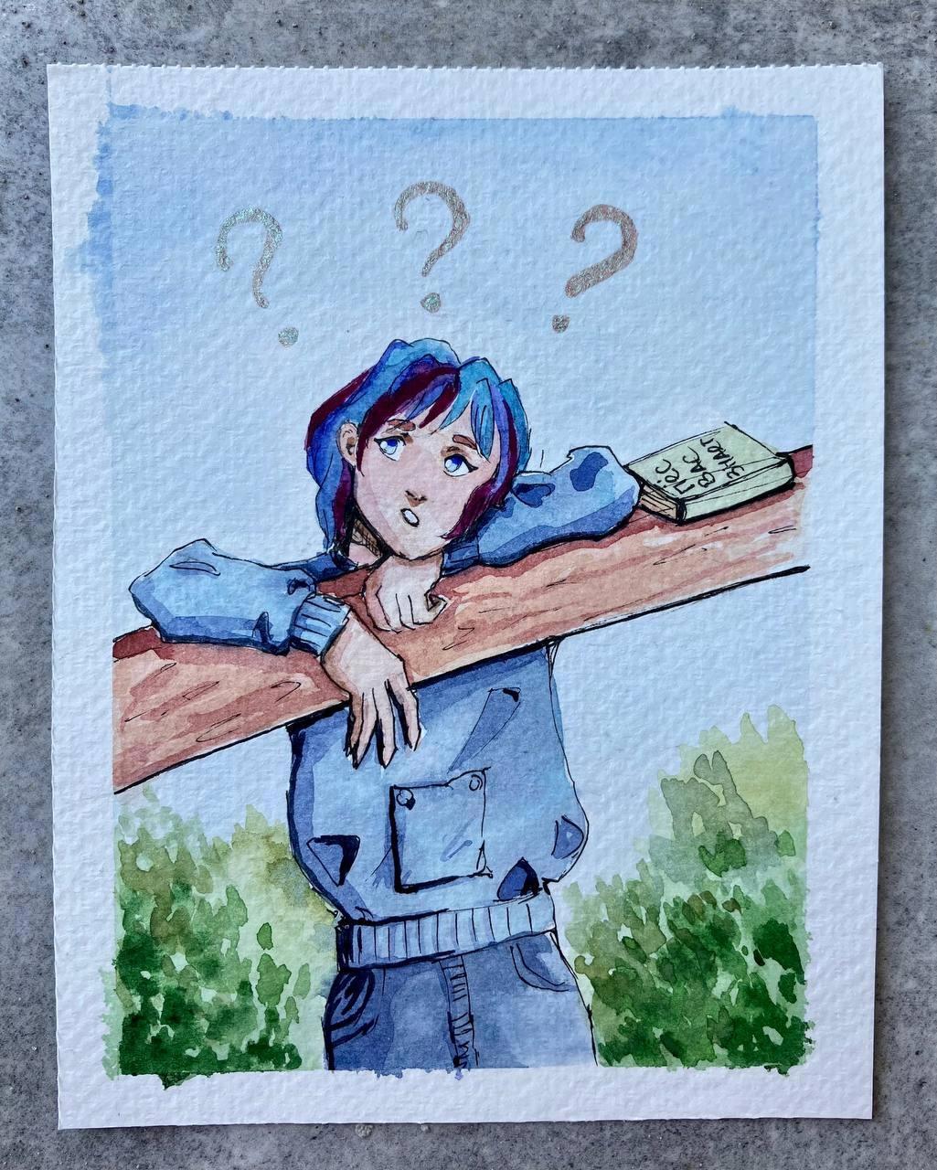 PS: Акварель, да. Там ещё знаки вопроса над головой так прикольно переливаются, но вживую я сама не видела, только по фоткам могу судить)
