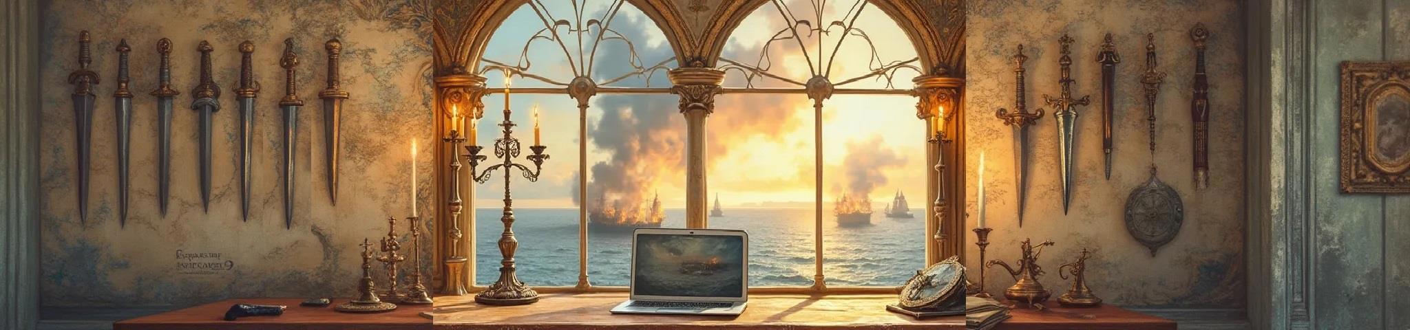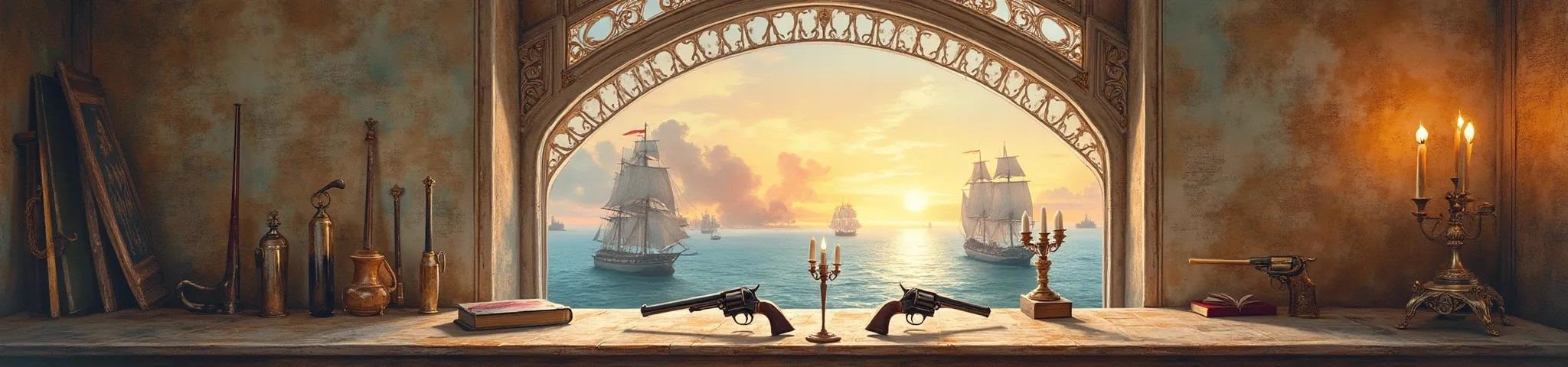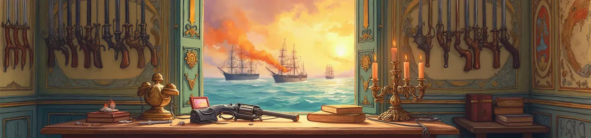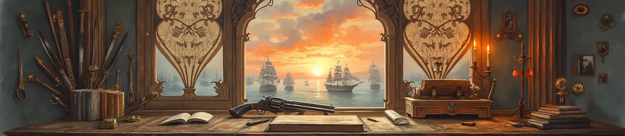 Любезнейший, ИИ! Вот здесь у тебя отличное венецианское окно. Вот такое и рисуй. А вот здесь лежит (а не парит) правильный револьвер правильного размера. Вот такой и нужен! А тут на стенах хорошие географические карты. Их и повторяй.