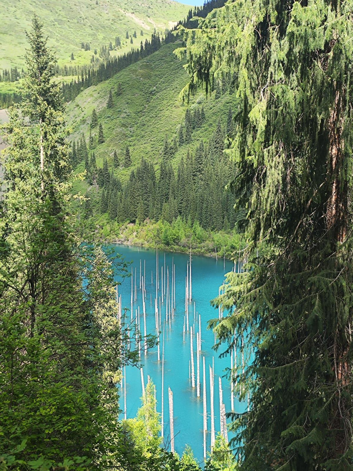 По сравнению с первым днём, про озеро Каинды мне рассказать почти что нечего – разве что то, что в слишком полноводной из-за дождей речке наш водитель потерял номер, и таких бедолаг на пути встретилось еще пятеро.