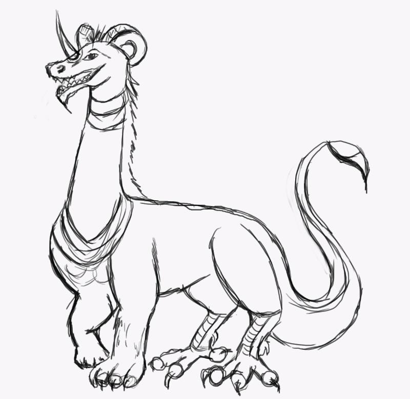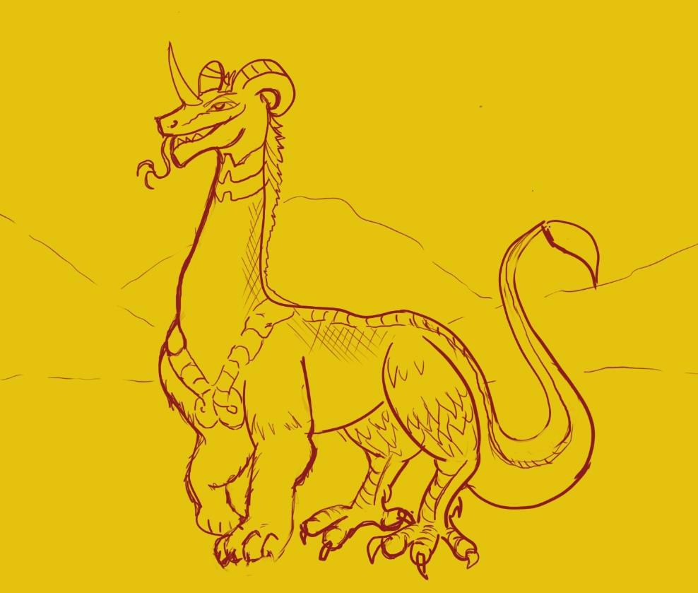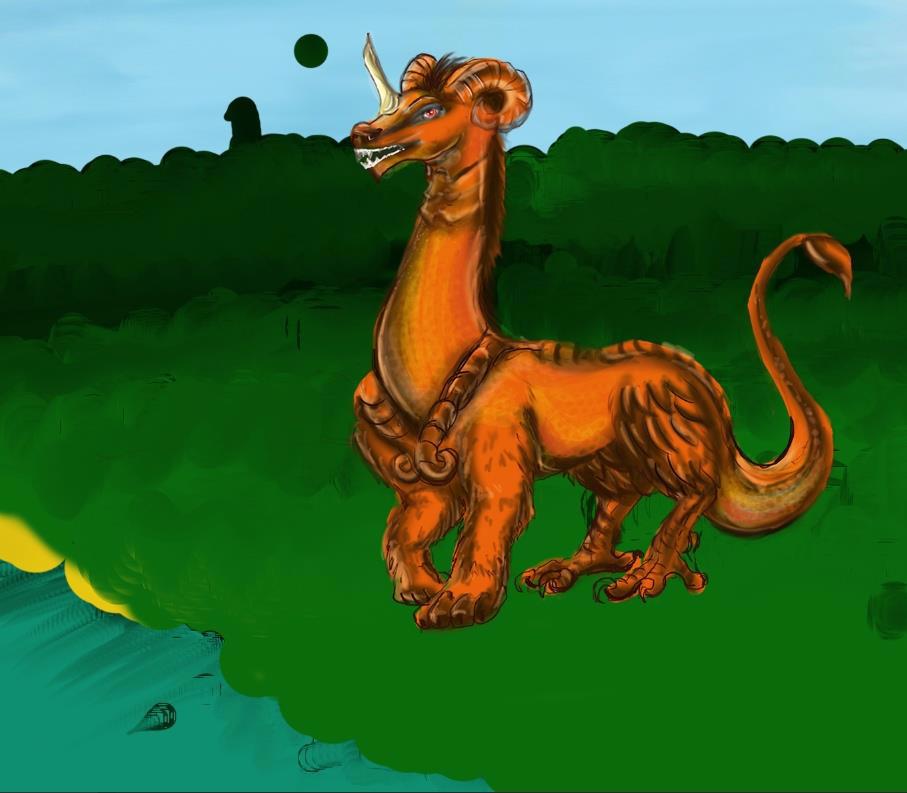 Выспавшись я открыла ФШ и с гордостью посмотрела на свой труд. Но вместо восхищения меня охватило разочарование. "Что это?" — пробормотала я, вглядываясь в свое творение. Сирруш напоминал скорее зкбу, что счастливо пасётся на лугу, чем мифическое чудовище. Чешуя выглядела как старый коврик, а глаза щёлки с красными шариками, а свирепый оскал превратился в улыбку, такое древние люди точно бояться не могли.