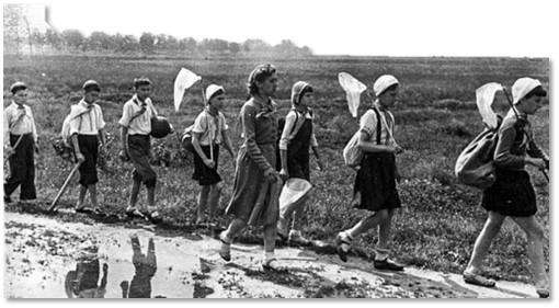Автор: Олег ПалекВсю смену мы жили строго в пределах лагеря. За территорию выходить не разрешалось, хотя особо за этим не следили. Помню только один случай, когда пионеры организованно отправились за территорию лагеря. Это был поход.