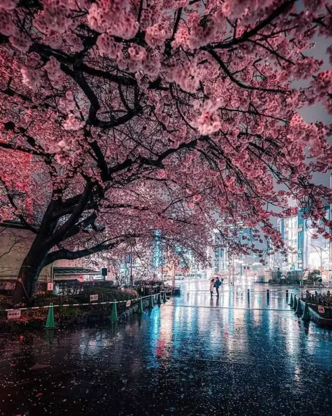 Сакура и дождь в Уэно, Токио, Япония (*)
