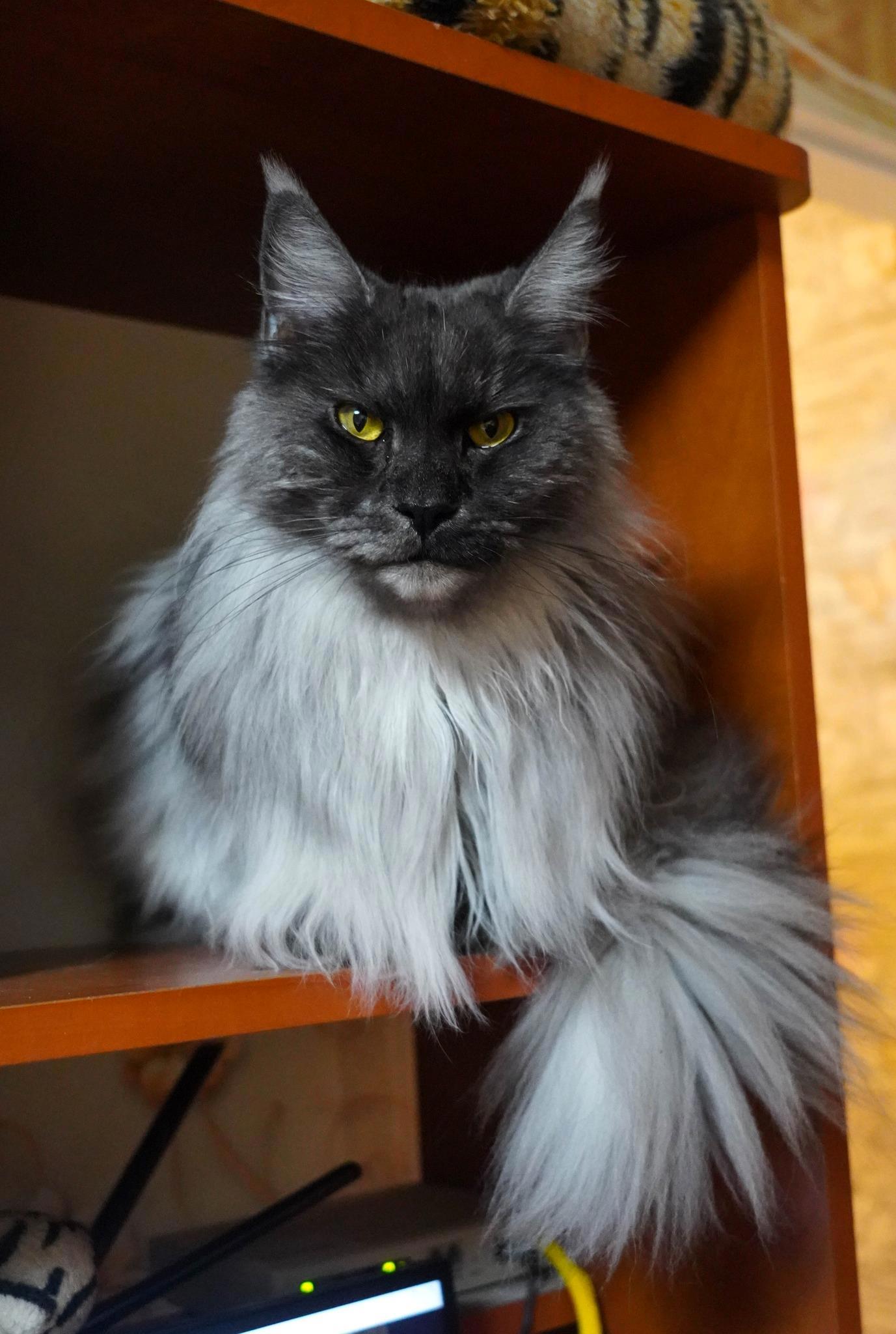 На самом деле добрейшей души кот, но в суровую мейнкунскую морду отлично умеет.