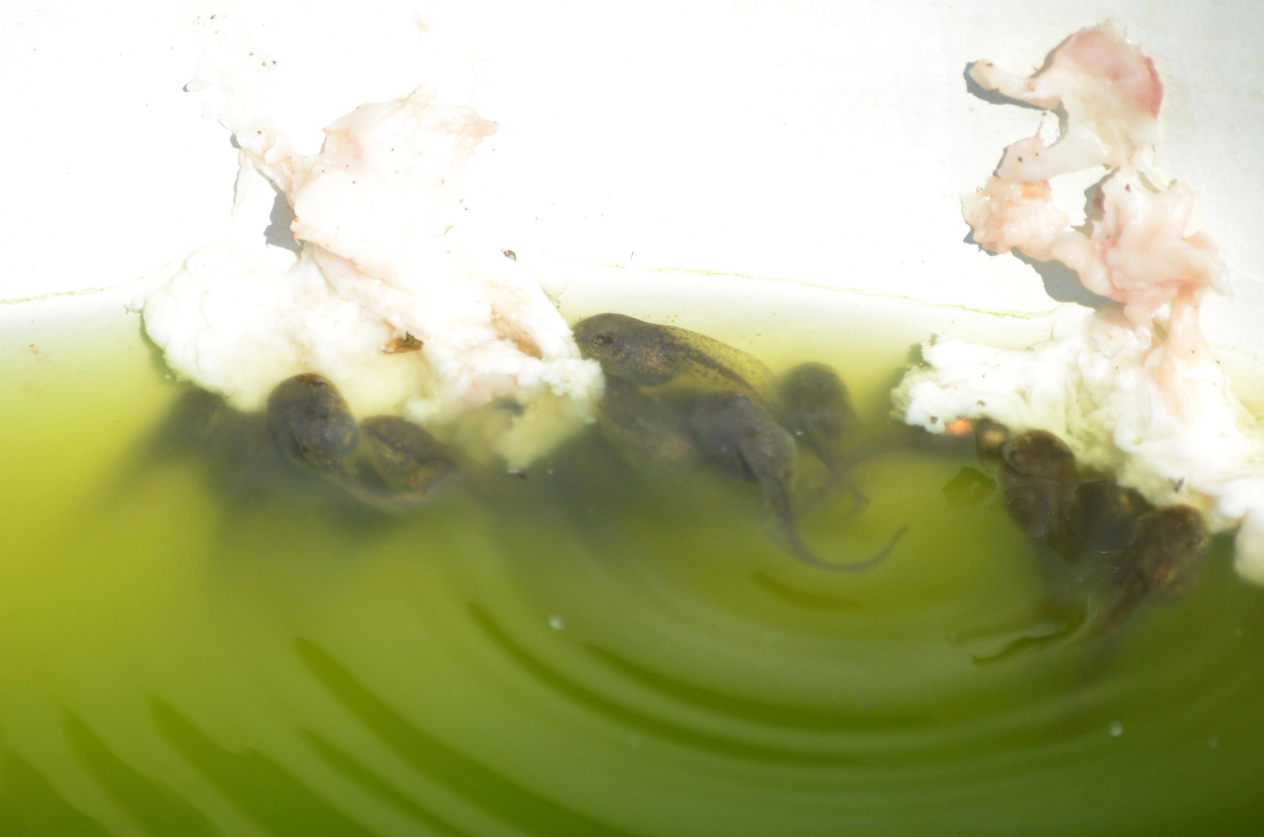 Очень юные хоккайдские лягушки Даниловской лягухофермы грызут свиную жёппу.
