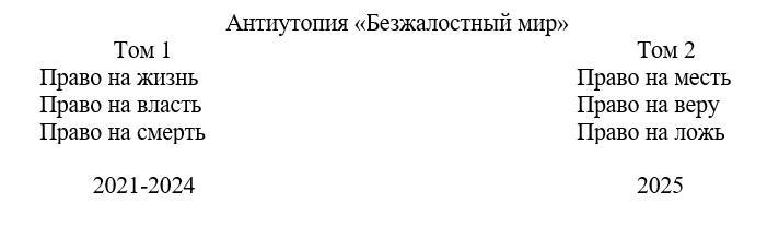 Планируется до конца года дописать и опубликовать третью часть «Право на смерть», по традиции состоящую из шести глав. После чего том будет помечен как первый из двух и получит статус закончен. Четвертая часть «Право на месть» увидит свет в 2025 году. И это будет настоящая бомба в авторском духе злой фантастики.
