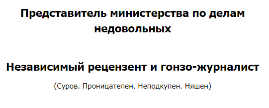 Насчёт Сергея Шапина не знаю, реакция была только со стороны модераторов. Поначалу посты выходили в разделе «Отзывы и критика», поскольку я не смог внятно определиться с темами. После обращения модератора я перенёс их в «Личное». Полагаю, кому-то крепко не понравились обзоры, и было принято решение накидать репортов модераторам для придания крамолы огню, но не фартануло. Хотя могли бы просто проплатить по нищему прайсу отсутствие этих самых постов или удоление своих шедевров из них. Видимо, не сообразили. Или денег жалко.