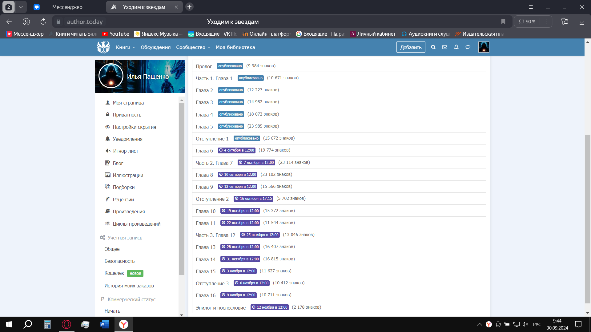 График публикации новых глав