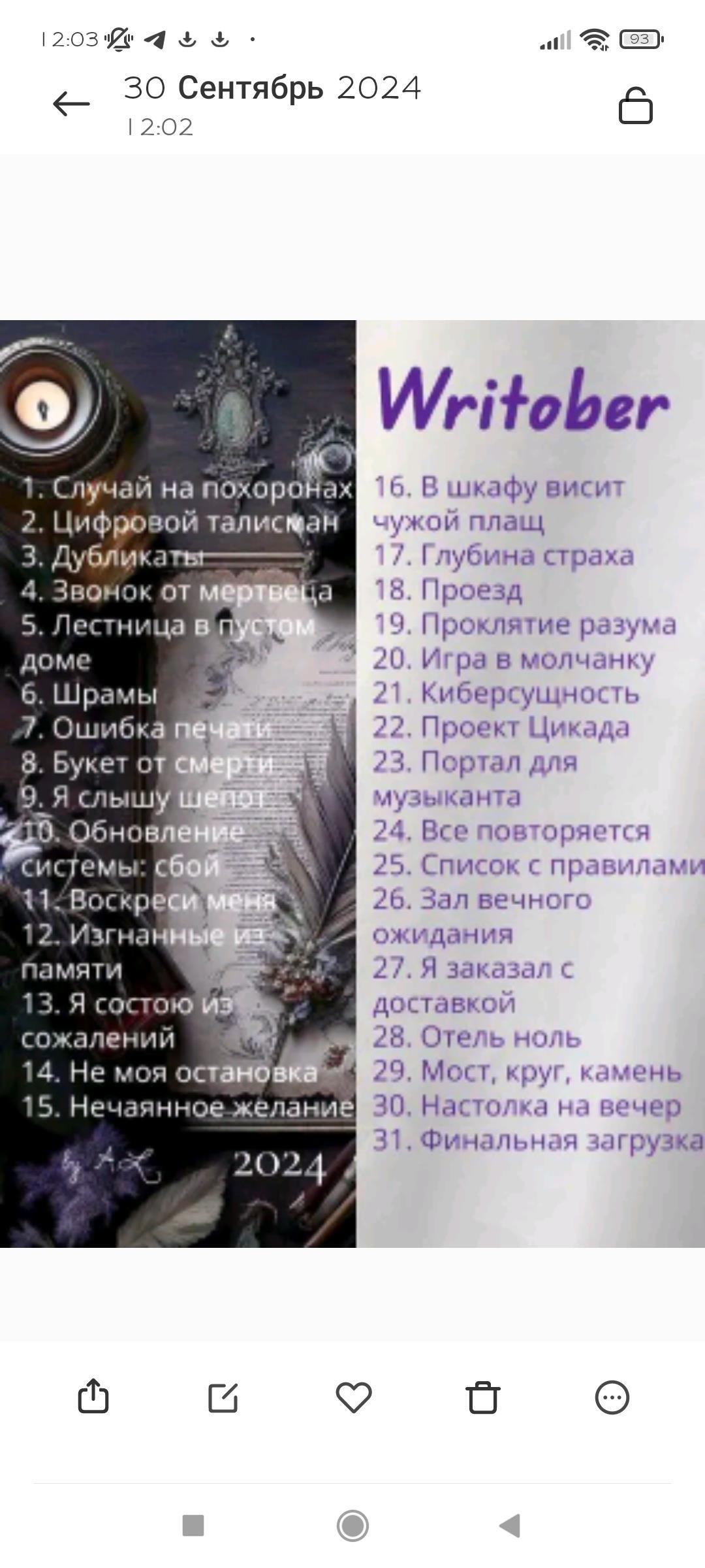 А ещё решила пойти на безумие и участвовать и в Инктобере, и в Врайтобере (Writober-24)