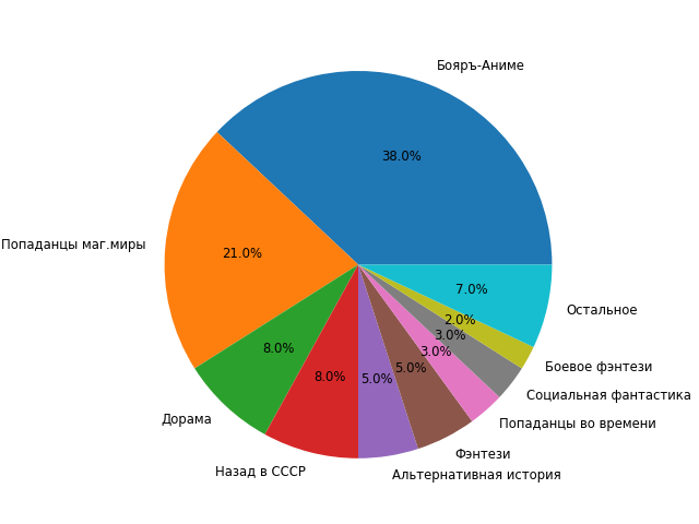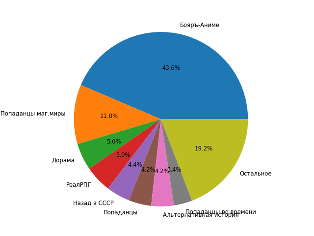 Информация собирается исходя из поисковой выдачи АТ, отсортированной по популярности за месяц: https://author.today/work/genre/all?rp=month&eg=-&fnd=false&page=1 (все фильтры были специально отключены).