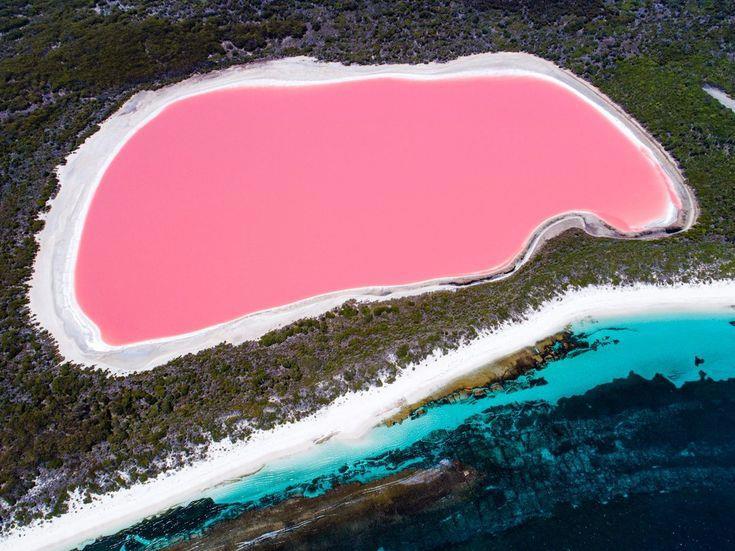 Озеро Хиллиер, расположенное на острове Мидл-Айленд в Западной Австралии, определенно выглядит так, словно находится на другой планете. Поразителен резкий контраст между розовым озером, темно-синими водами Индийского океана и сочным зеленым лесом.