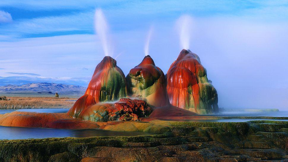 Гейзер Fly расположен на ранчо Fly посреди пустыни Невада.