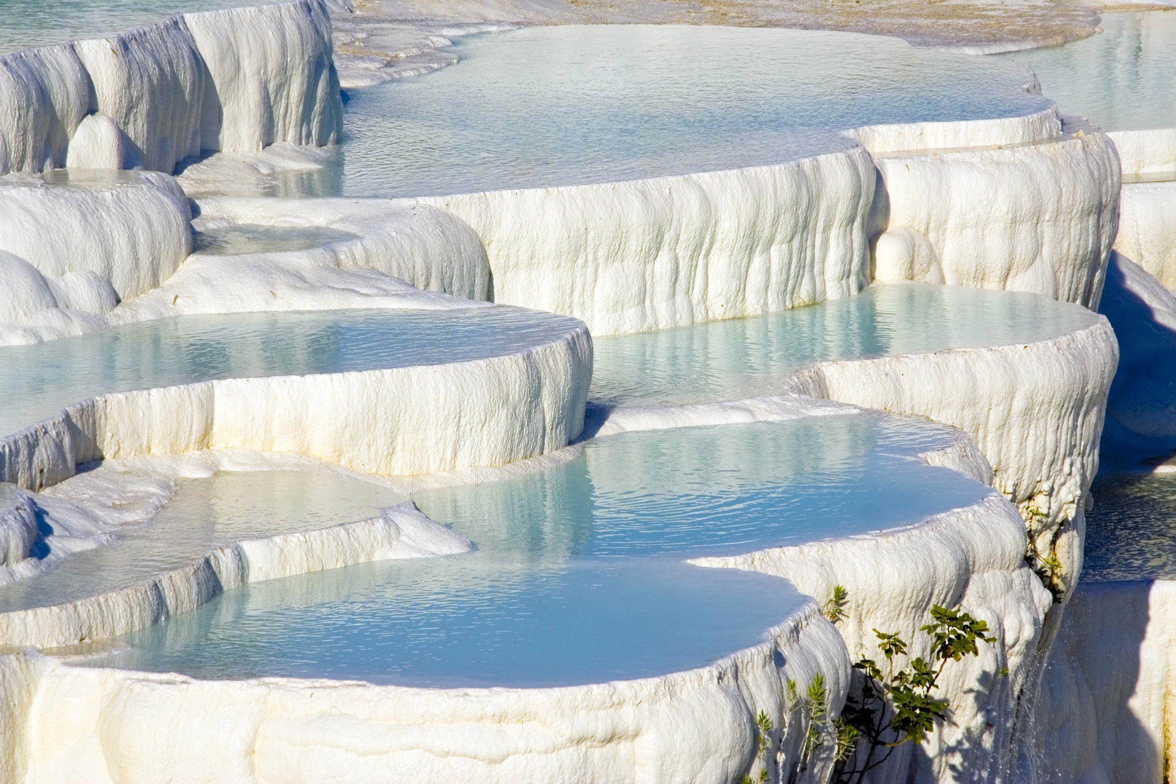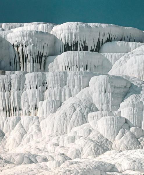 Памуккале, Турция, привлекает туристов со всего мира. "Хлопковый замок" создан из бикарбоната кальция. (*)