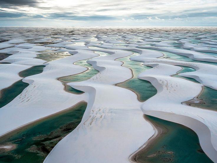 Национальный парк Ленсуа-Мараньенсес (Бразилия) состоит из обширных полос белых дюн, разделенных очаровательными голубыми лагунами. (*)