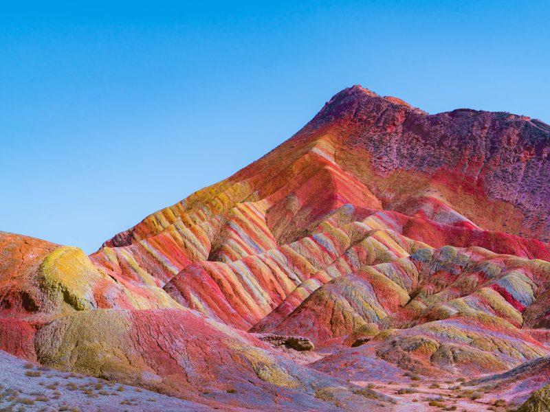 Рейнбоу-Маунтин расположена в горах Анды в Перу, на высоте около 17 000 футов (5200 м) над уровнем моря, согласно туристическому веб-сайту Rainbow Mountain. Гора с прожилками славится своим ярким внешним видом, который создается различными минеральными отложениями.