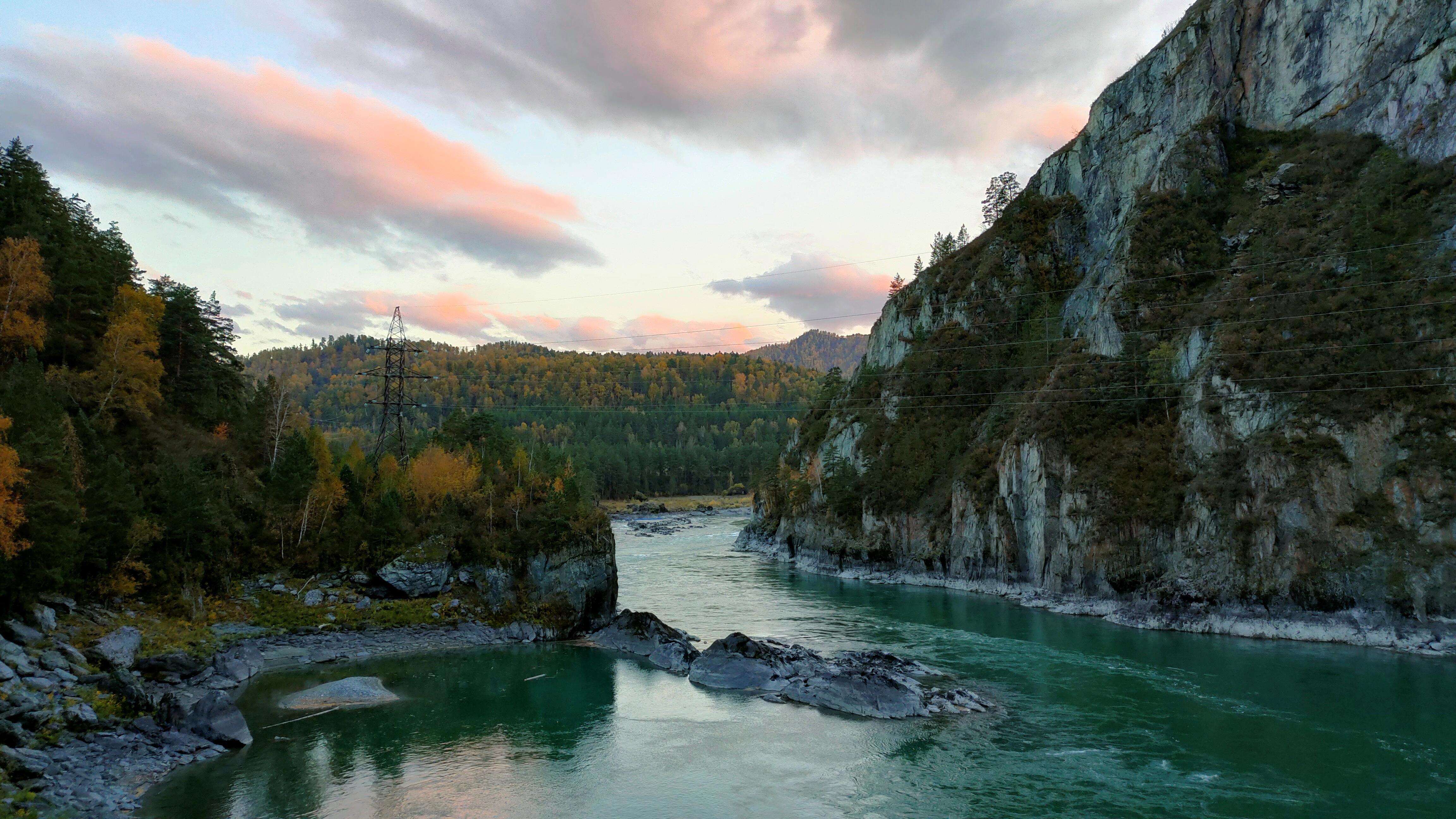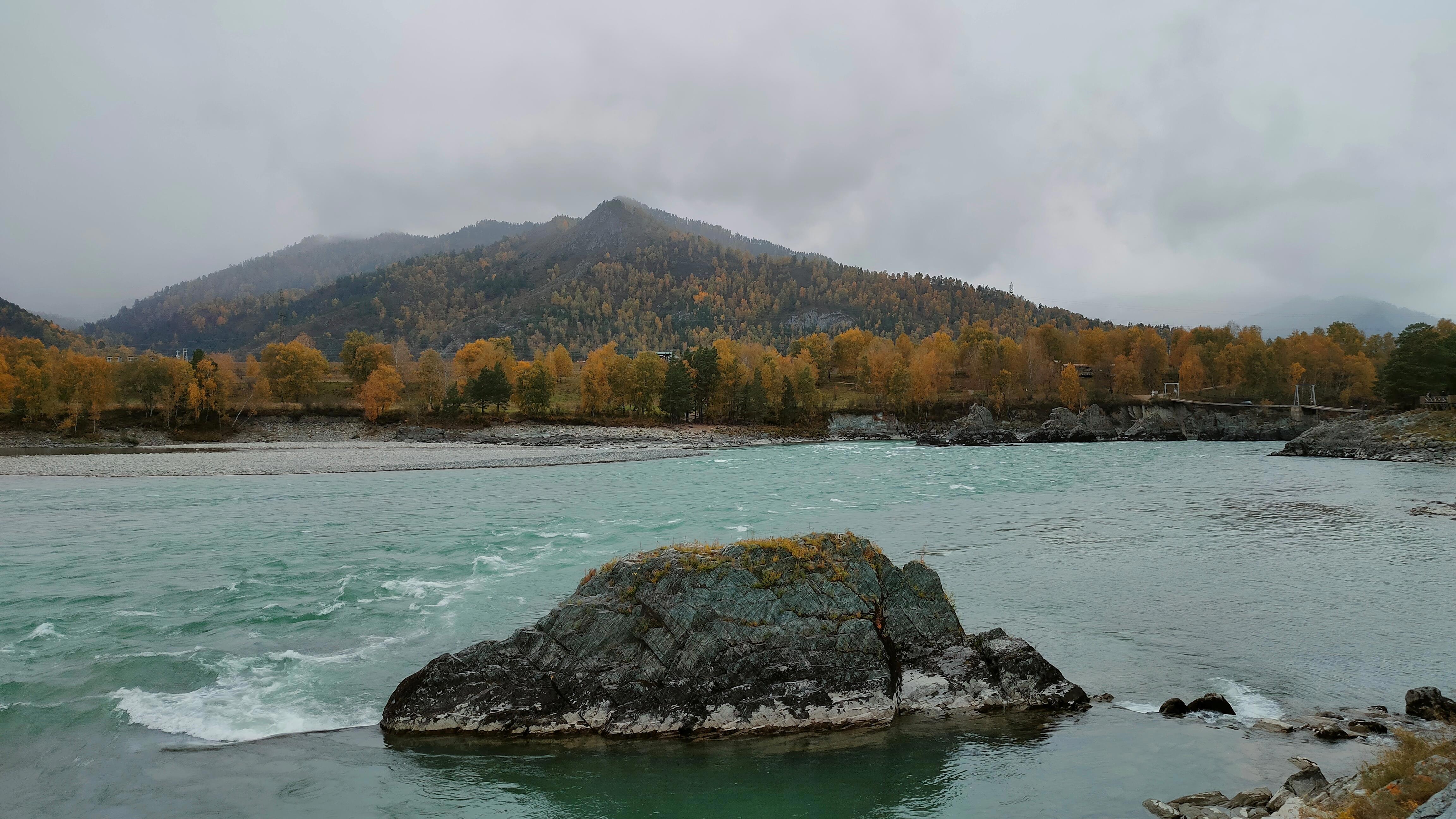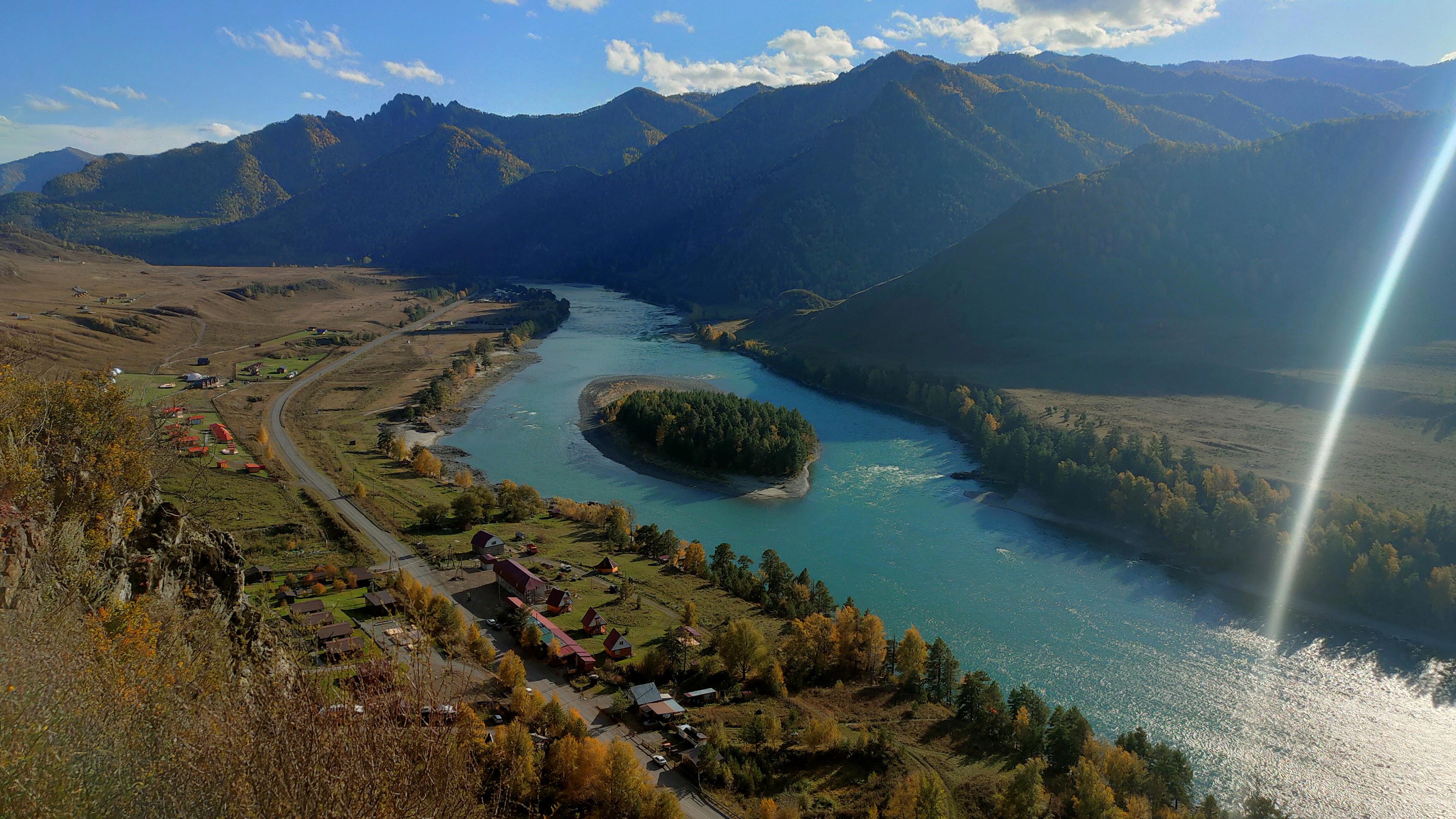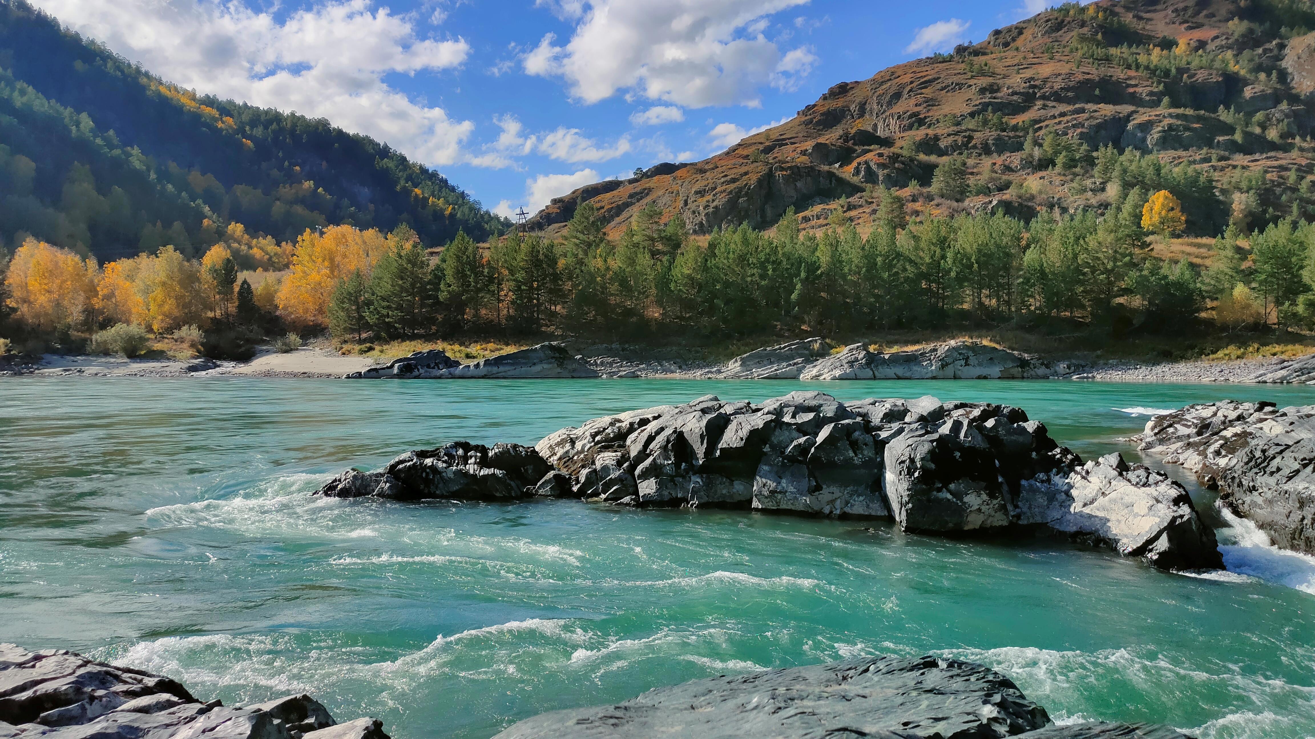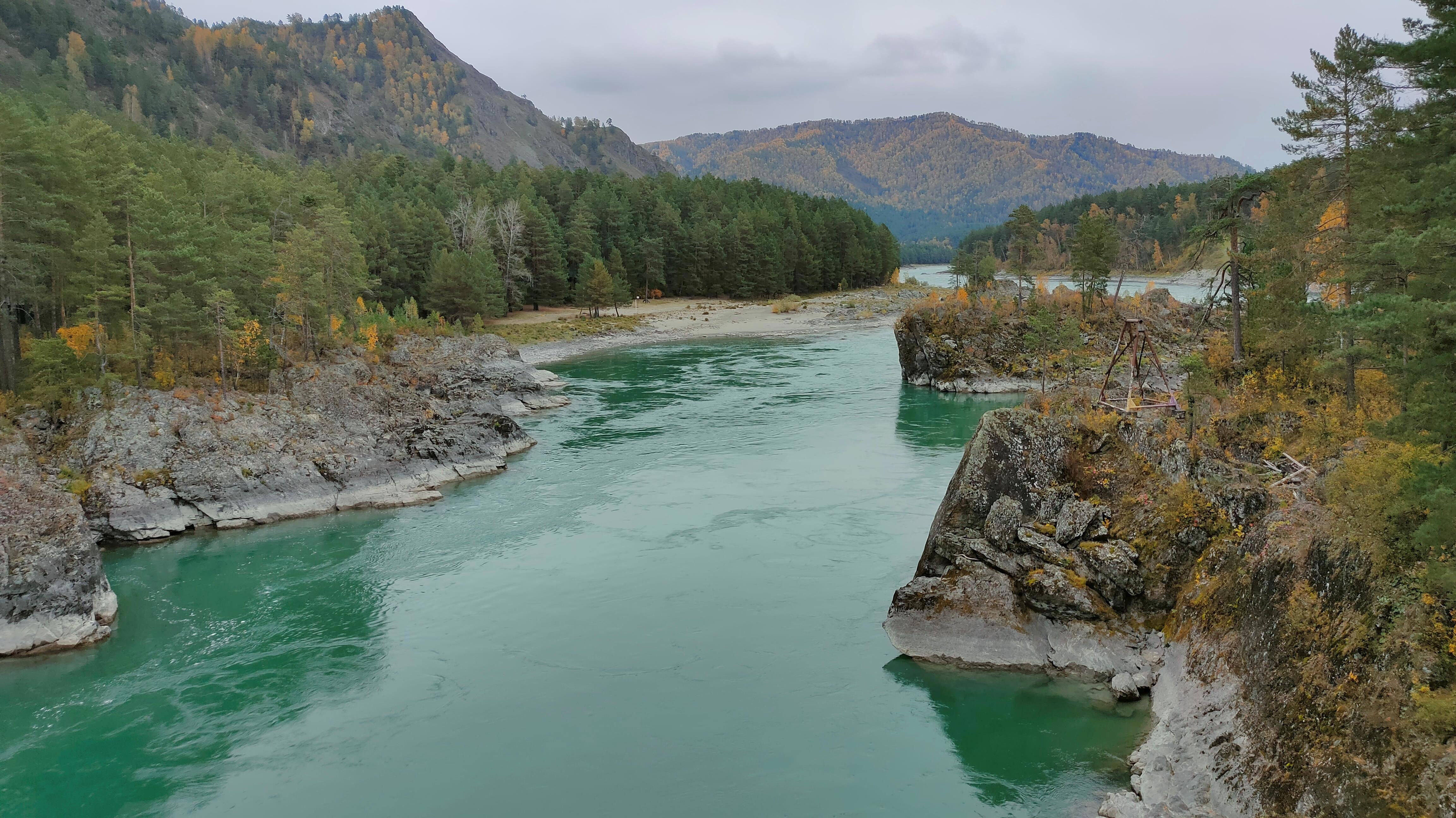 Но реку-то не зря прозвали бирюзовой. Правда, раскрывается она в этом цвете только осенью и зимой. Где-то со второй половины сентября Горный Алтай преображается, становится рыже-золотым, а его главная красавица — Катунь — окрашивается в невероятный бирюзовый оттенок.