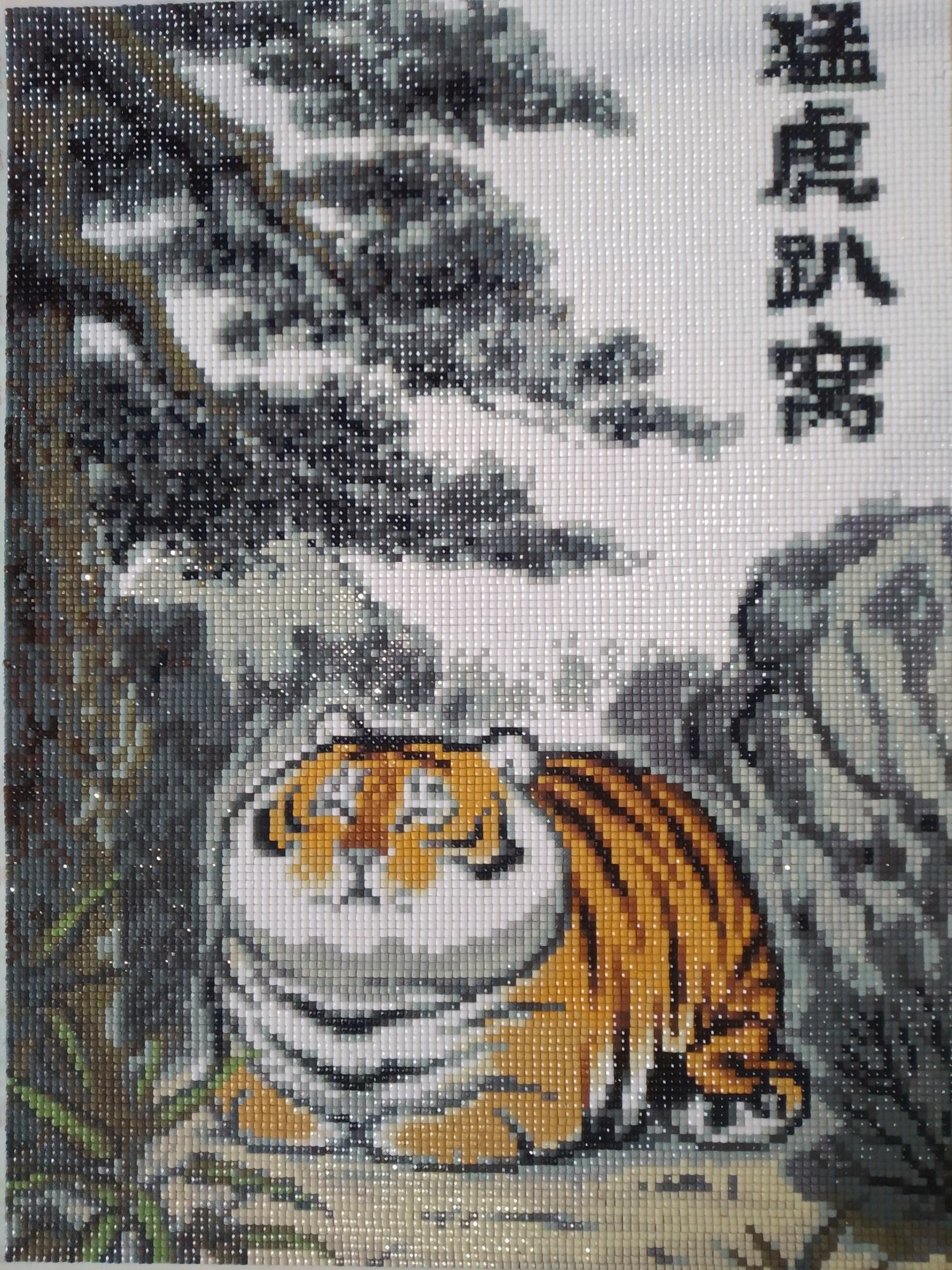 И в качестве поддержания здоровья приложим к этим волшебным циферкам котика. У меня нет котика, но есть картинка котика! Картинка картинки котика из мозаики, которую я сама собрала (алмазная вышивка):