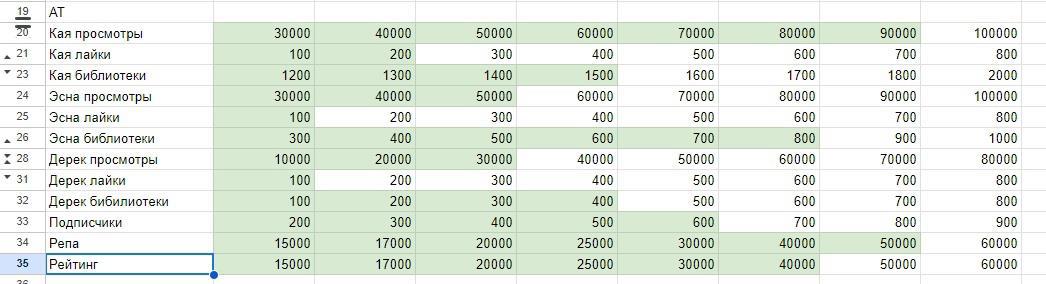 Когда меня никто не читает, и мне из-за этого грустно, я иду смотреть вот такую табличку, где отмечаю свои достижения на АТ: