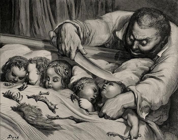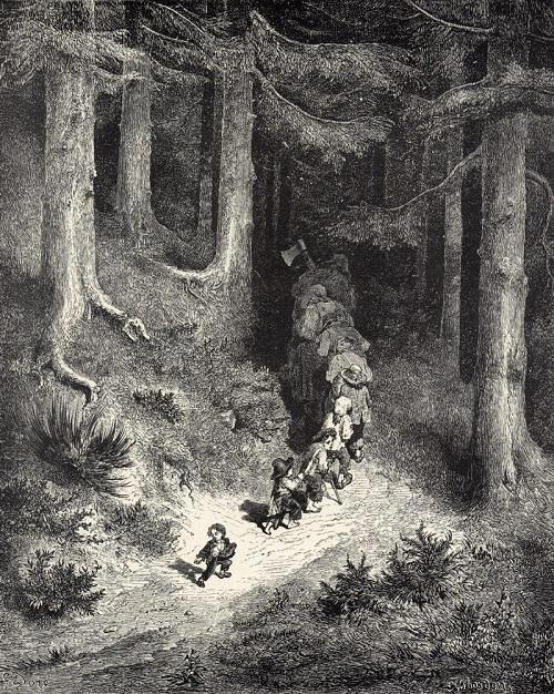 Нет, ну действительно. Измученные голодом родители отводят семерых детей в лесную чащу и бросают их там на погибель. А потом еще и повторяют этот подвиг. А приключения детей в зловещем доме каннибала, который в итоге собственноручно перерезал глотки своим дочерям?
