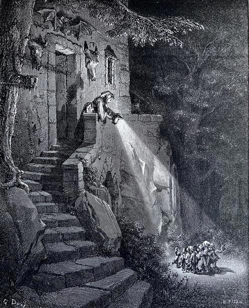 Надо сказать, что концовку сказки "Мальчик с пальчик" вообще обычно обрезали в детских изданиях - а зря! Приключения младшего брата в должности придворного курьера в самоходных людоедских сапогах очень даже занимательны.